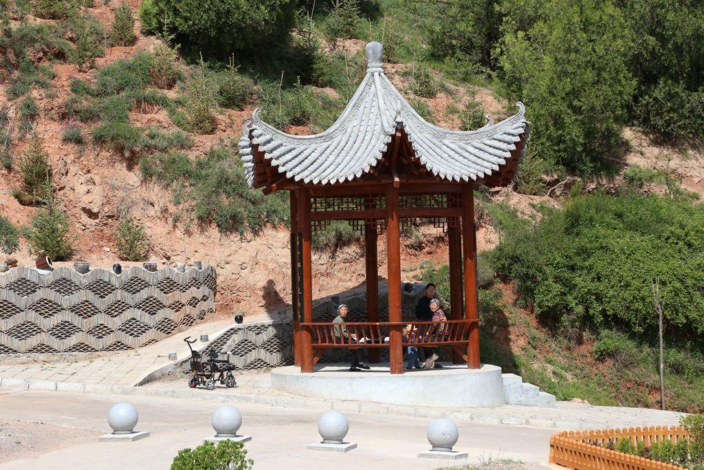 立夏过后的武山县城关镇君山村,老槐树顶着硕大的树冠,树叶随风沙沙作响,雪白的槐花香气四溢,槐树下的亭子里凉意袭人,茶余饭后的村民三三两两聚在一起。
