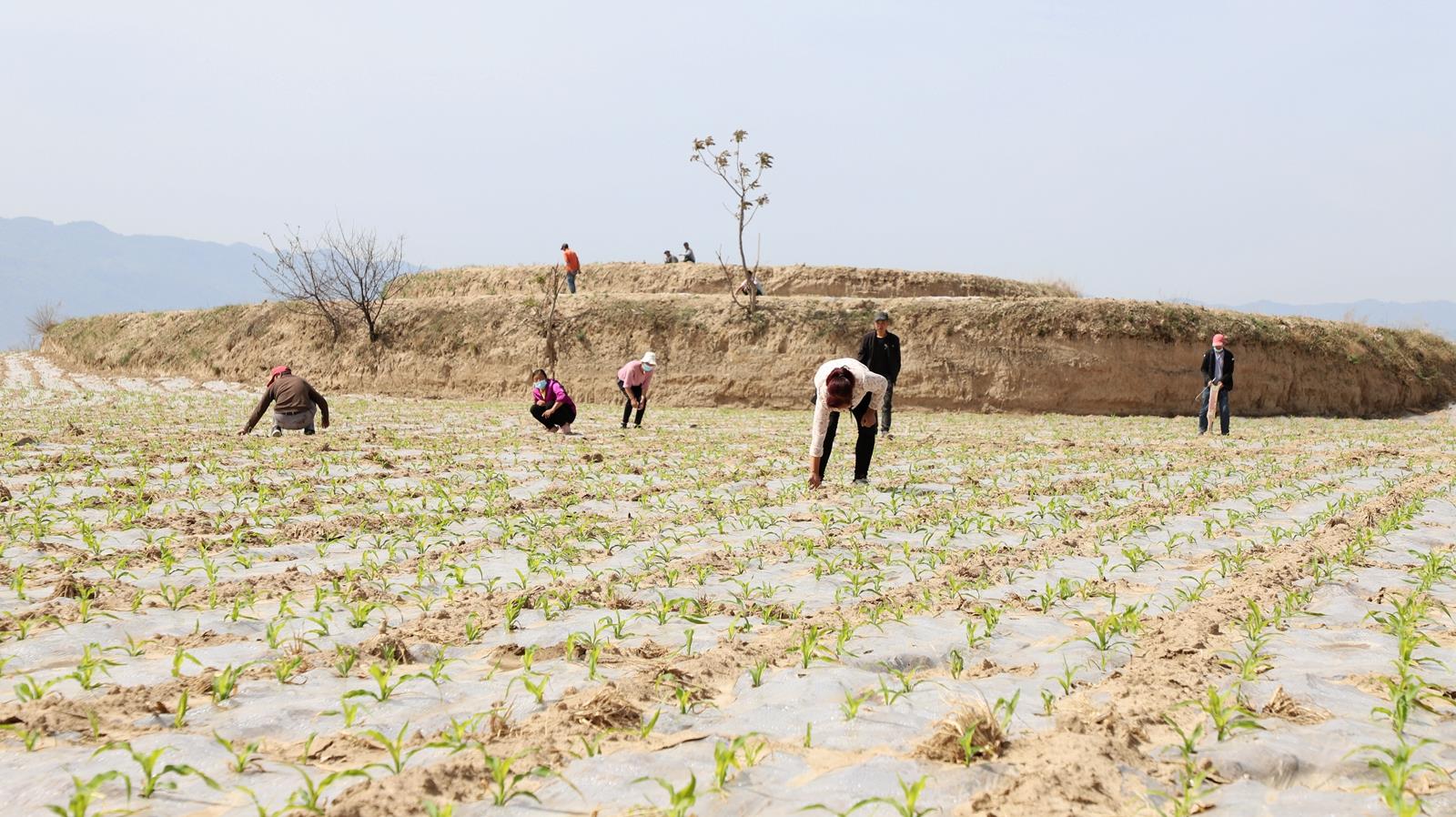 武山县融媒体中心5月18日讯(记者 郭永强 何慧 王正平 赵超)初夏,一场阵雨过后,海拔2100米的甘肃省天水市武山县马力镇万亩玉米种植基地,村民忙着把玉米苗从地膜中放出来。嫩绿的幼苗沐浴着阳光、吸收着雨水,正茁壮成长。该基地共有耕地面积10424亩,这几年玉米成为这片区域的主要种植作物之一。