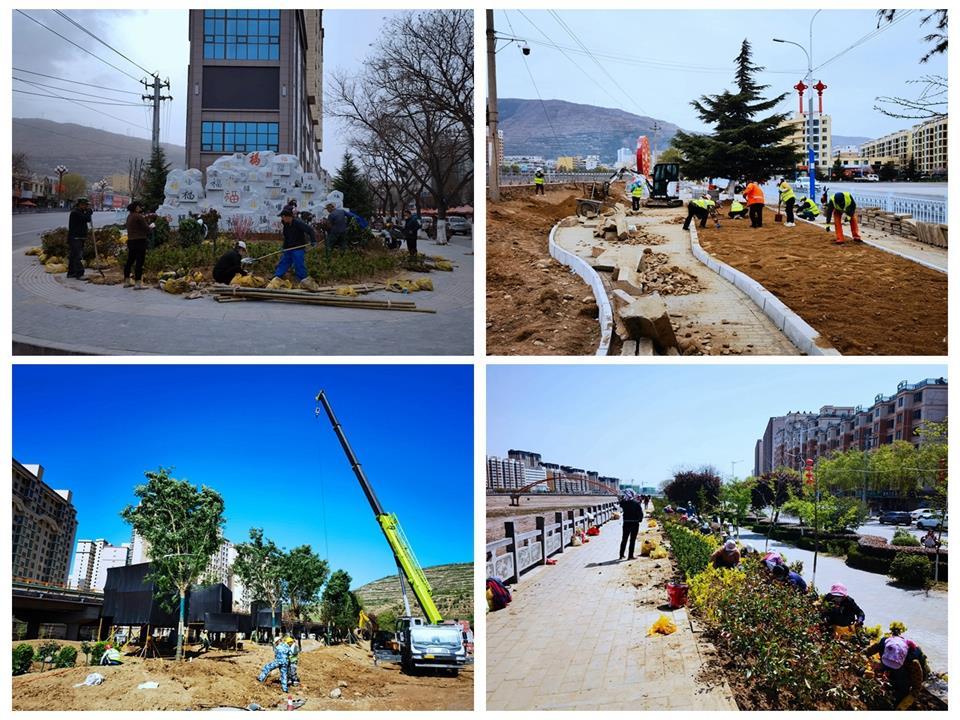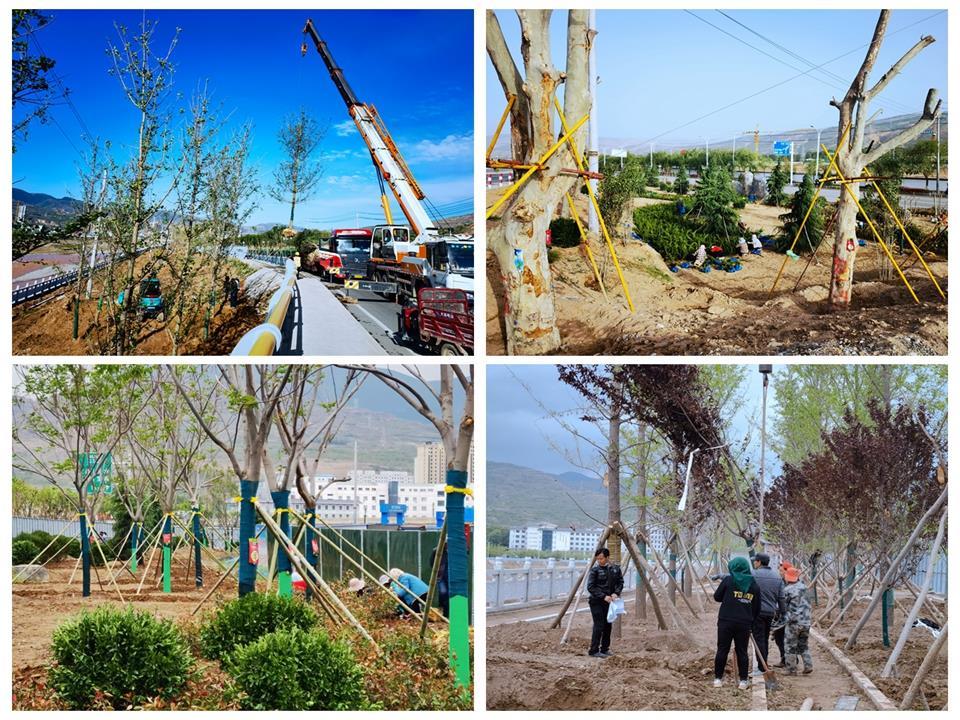 因地制宜,扎实开展城区绿化提升改造。抓住春季绿化的大好时节,选用适宜优质苗木对城区绿化带缺株断档处进行填空补齐,共栽植国槐、法桐、垂柳237株。在东飞商业大厦东侧闲置地,改造“口袋”广场1处,建成花岗岩“百福墙”1座,新增绿化120㎡。利用人民广场北侧苗圃原始地貌,依托原有林地,兼顾经济性、景观性、功能性,建成体育休闲公园1处。园内设置儿童活动区1个、休闲健身广场2个、400米形似“小提琴”的环形生态步道1条。制定《南北滨河路护坡绿化补植补造方案》,改造河堤护坡2.6公里约7800平方米,栽植红叶石楠、金叶女贞、高山黄杨、金叶榆等8种灌木40万余株,对裸露地进行修复,有效维护了城市绿化现状。制定《通远街改造方案》,改造道路290米,栽植行道树47株、更换路灯17盏、安装护栏580米,埋设“五网”管线3200米、废除杆线8根、雨污水收集11处,开发新增街道绿化260平方米,全方位提升道路绿化建设水平,全面消除该区域“空中蜘蛛网”,进一步方便群众的安全出行,营造“洁净、整齐、有序、美丽”的城市环境。
