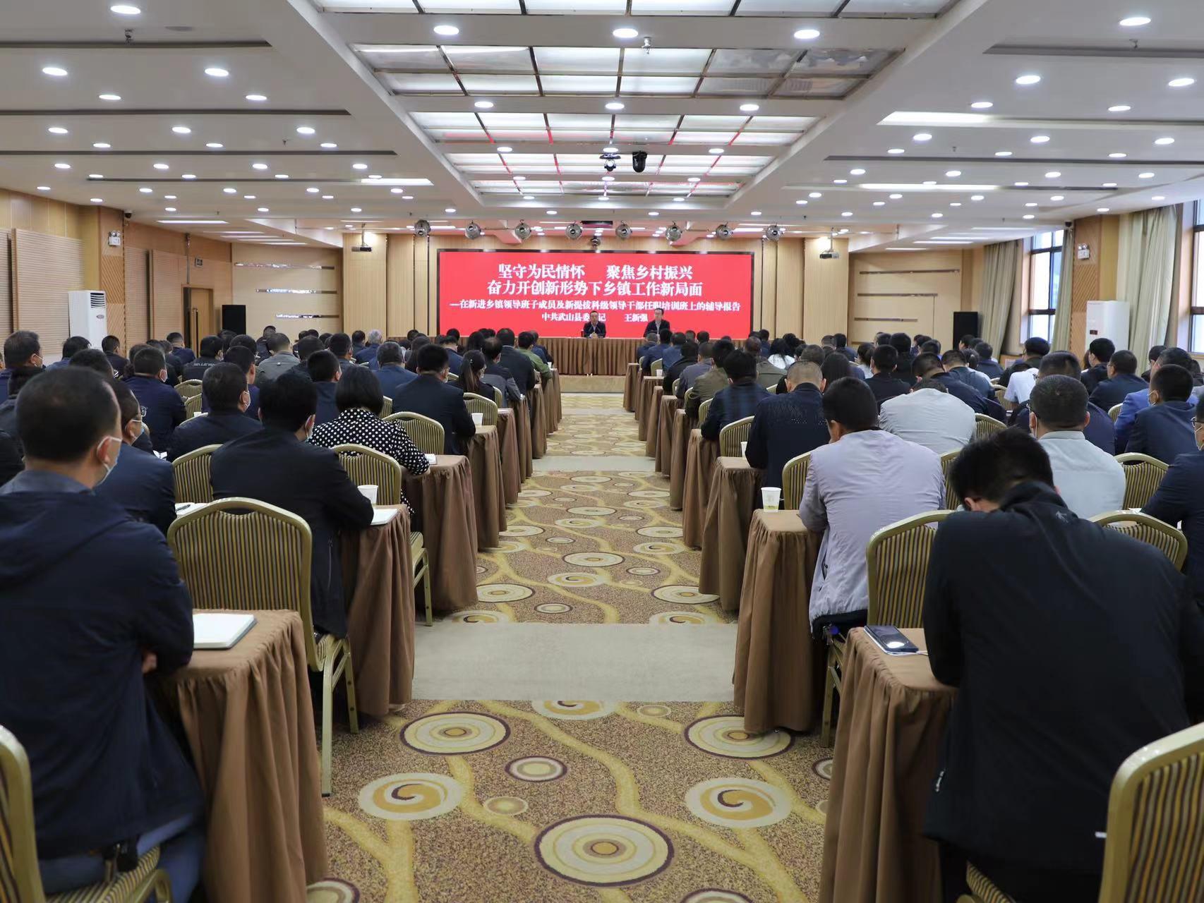 武山县融媒体中心5月13日讯 (记者 蒲爱民 管秋勇)5月13日,在武山县新进乡镇领导班子成员及新提拔科级领导干部培训班上,县委书记王新强为培训学员作了题为《坚守为民情怀 聚焦乡村振兴 奋力开创新形势下乡镇工作新局面》的专题辅导,希望全县各级干部能够紧紧围绕发展大局,珍惜工作岗位,更加用心用情用力工作,干一行、爱一行、精一行,施展自己的才能抱负,让武山变得更加美好、更加美丽、更加具有吸引力,努力为武山未来共绘发展蓝图。