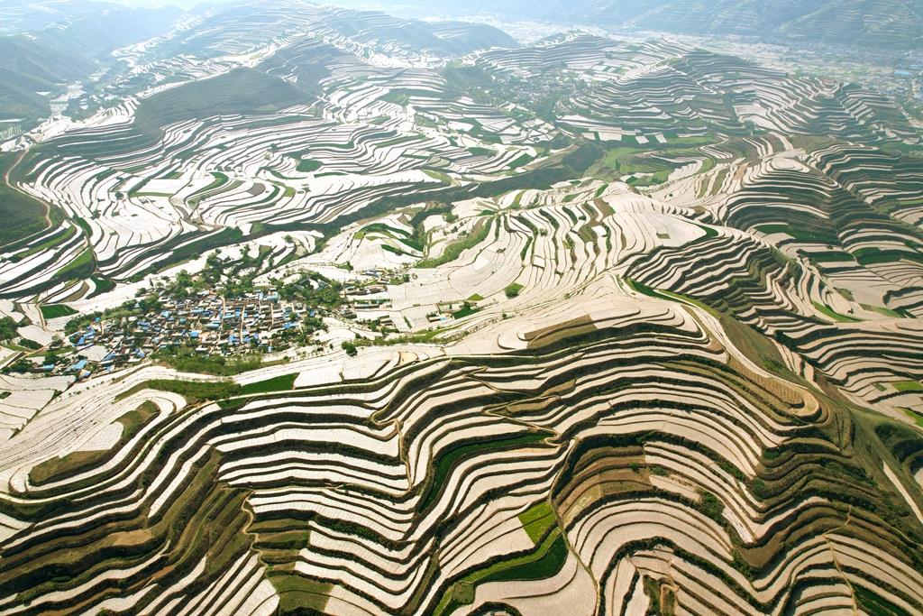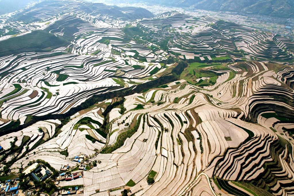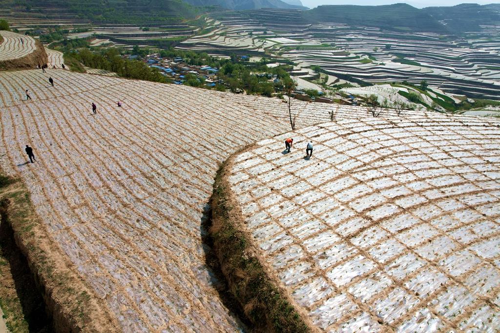 武山县融媒体中心5月11日讯(记者 何慧 赵超 郭永强 王正平 )5月10日,记者在马力镇万亩全膜玉米种植片区采访时看到,早春播种的玉米已经长成了幼苗,一片片梯田覆盖上了一层嫩绿,一行行幼苗整齐排列,长势良好。