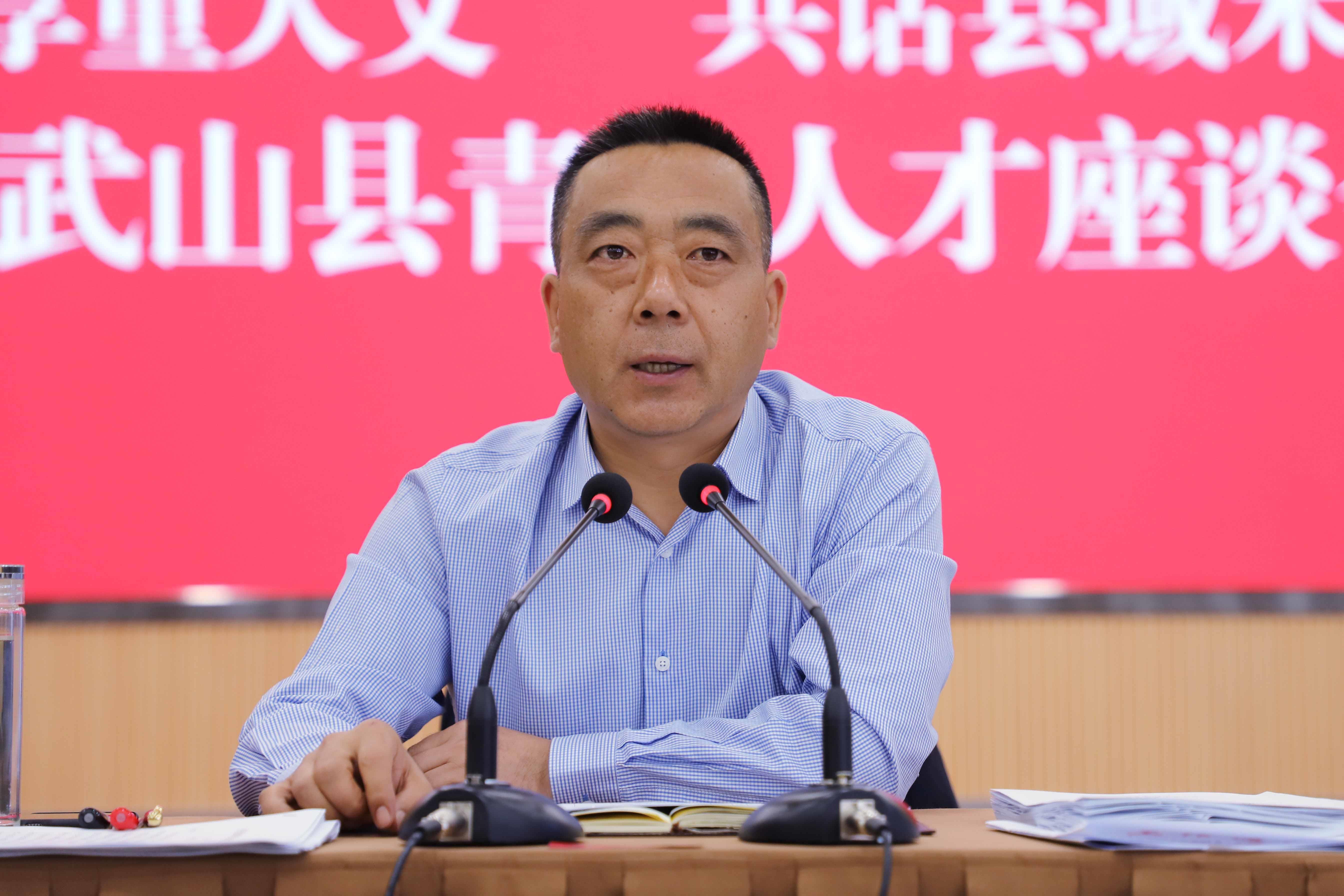 为了庆祝五四青年节,5月4日,武山县召开以“饱览渭川厚重人文,共话县域未来发展”为主题的全县青年人才座谈会。县委书记王新强出席并讲话,他强调,要认真学习贯彻习近平总书记关于青年和人才工作的重要论述,激励广大青年传承和弘扬“五四”精神,激发青年人才干事创业,在各自的岗位上认真工作,努力实现人生价值,为加快建设经济繁荣、城乡美丽、生态宜居、治理高效、人民幸福的现代化新武山而不懈奋斗。