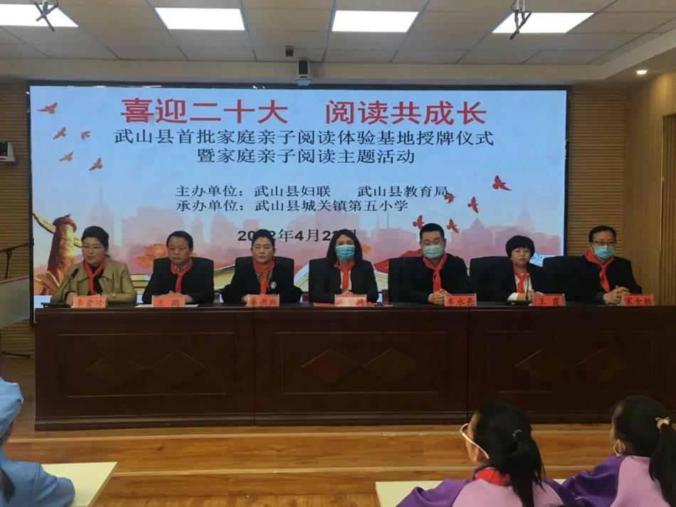 最是一年春好处,正是读书好时节。4月22日,在第27个“世界读书日”来临之际,武山县妇联联合县委宣传部、教育局、文旅局,在城关镇第五小学举行了以“喜迎二十大•阅读共成长”为主题的武山县首批家庭亲子阅读体验基地授牌仪式暨家庭亲子阅读主题活动,县委宣传部、县妇联、县教育局、县文旅局、图书馆、城关三小、城关五小、县二幼、渭北社区、西关社区负责人及部分教师、家长、学生代表共计60余人参加了活动。