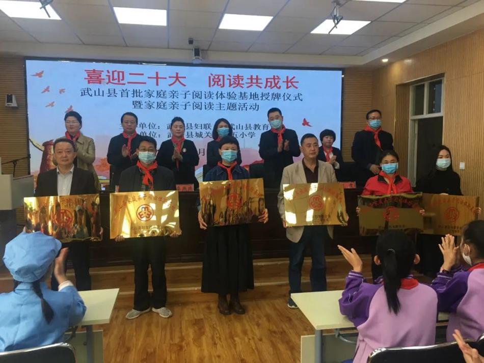 活动中,县图书馆馆长宣读了《奋进新征程,阅读再出发》武山县全民阅读活动倡议书,县文旅局副局长及县教育局办公室主任作了发言,县妇联副主席王霞宣读了《武山县妇女联合会关于推荐命名首批武山县家庭亲自阅读体验基地》的通知。现场为图书馆等6个武山县首批家庭亲子阅读体验基地进行了授牌。城关镇第五小学李校长介绍了近年来开展家庭亲子阅读活动情况,并代表首批家庭亲子阅读体验基地作了表态代言。