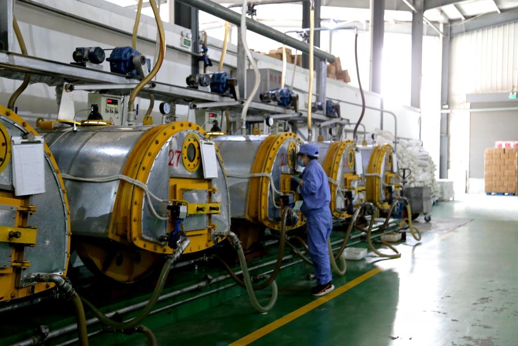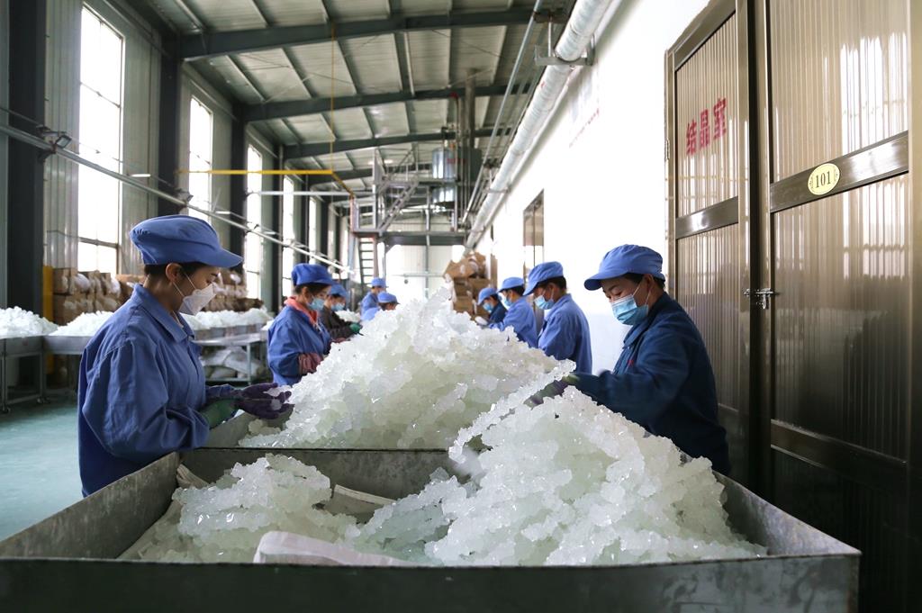 4月12日,记者在广丰糖业有限公司的产品生产车间看到,几十件大型高温制糖器械正在工人的操作下忙碌作业。在冰糖精深加工生产线上,工人身穿工作服,戴着口罩正在分拣结晶好的冰糖成品,一串串晶莹剔透的冰糖首先通过机器的初筛然后再经由生产工人“精挑细选”,最后的成品入袋包装。广丰糖业有限公司办公室主任张晶晶告诉记者,场内用工有50人,在做好疫情防控的同时,各生产线有条不紊进行着。“我们首先对大门口、餐厅、生产车间还有办公楼每天进行全面的消杀。餐厅用餐也安排了错开坐,同时严禁用餐时间挤堆聊天。”张晶晶说,疫情防控期间生产进度不减,去年公司总产值是2219万,今年第一季度产值是258万,后续也很有信心完成今年的年终目标,带动更多群众就业。