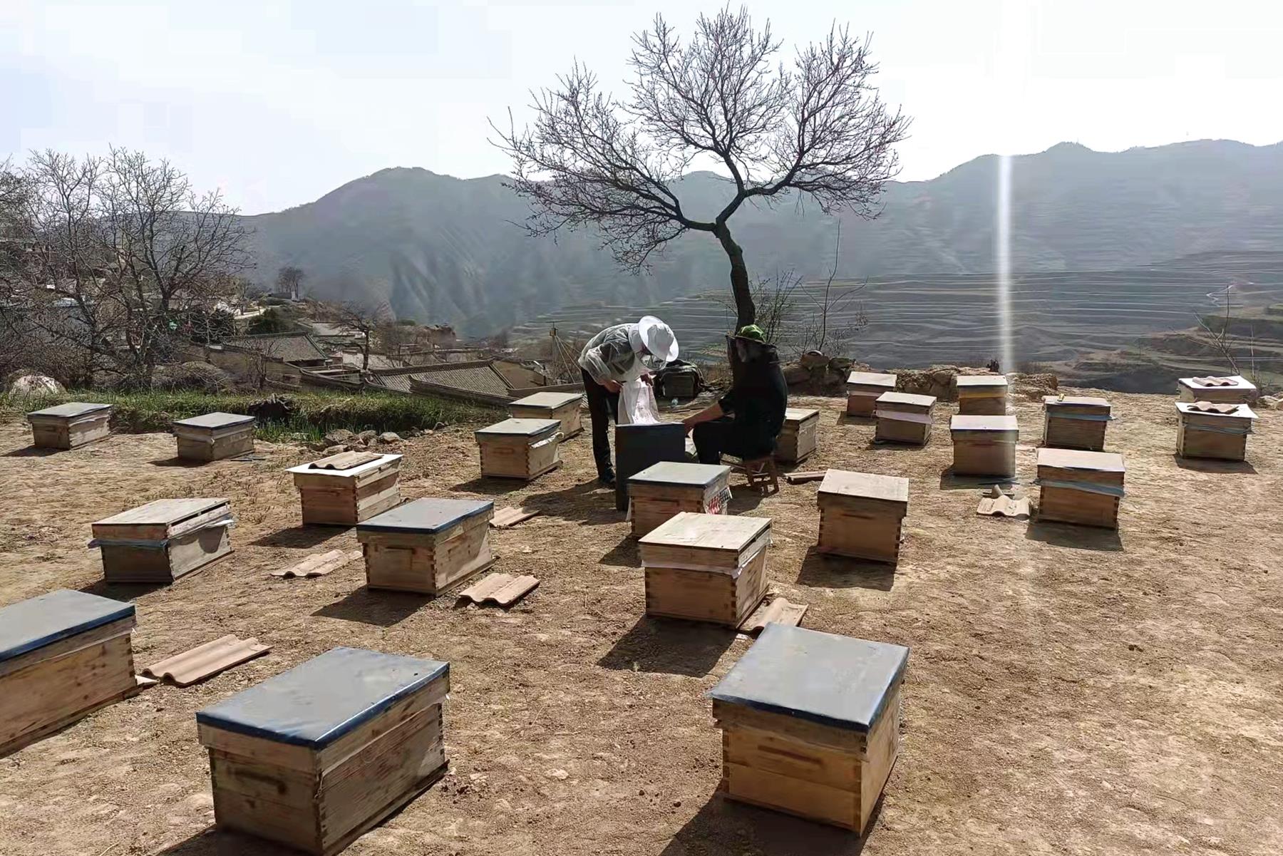 有了去年的成功,今年有意愿的群众越来越多。年初,通过统计,最终引进了130箱蜜蜂,其中100箱驻村帮扶工作队和村委会管理,用来发展壮大村集体经济,另外30箱是群众看到“钱景”自己养殖的。
