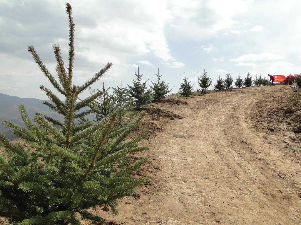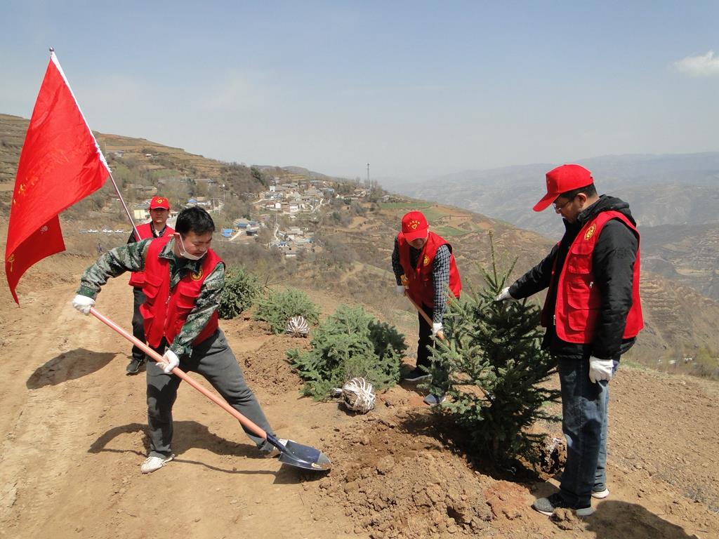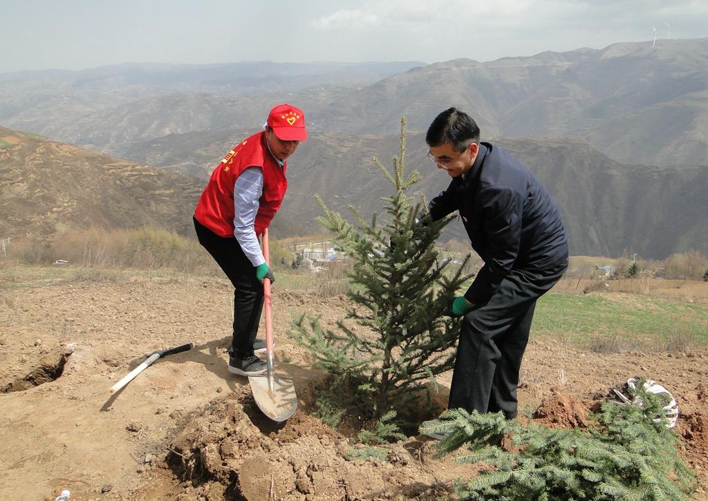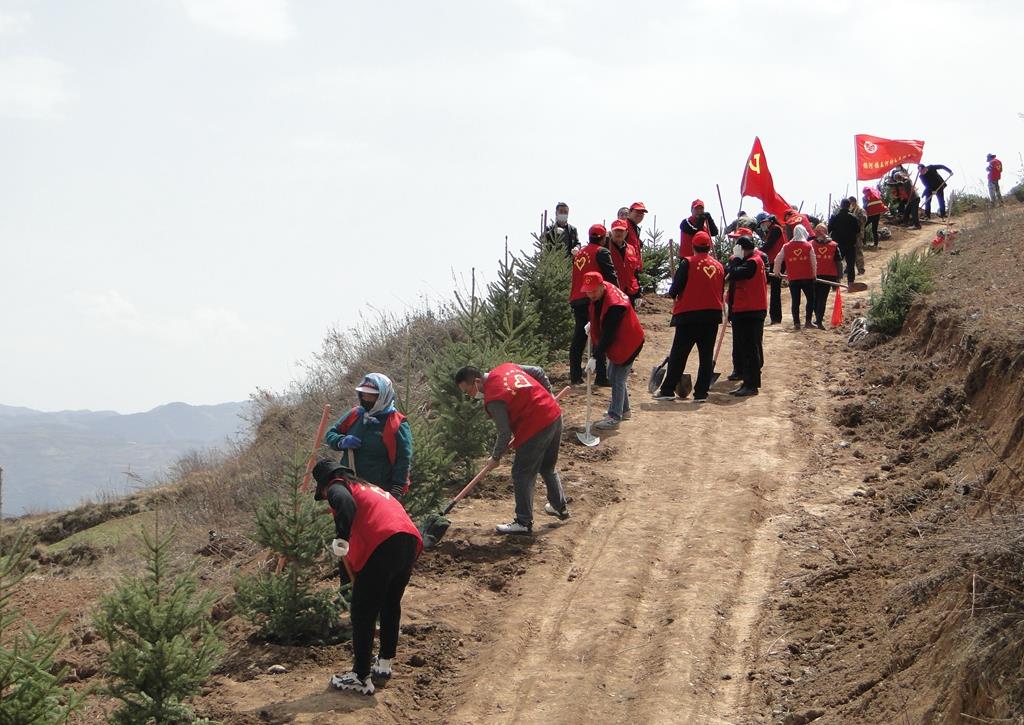 夏庄村位于杨河镇西北部,平均海拔2240米,属武山南部高寒二阴山区,年平均降雨435.7mm,平均气温5.4摄氏度,无霜期170天。4月的夏庄村迎来回暖期,风柔天暖,漫山草木吐绿。植树现场,县、镇、村党员干部与群众各司其责,团结协作,将一颗颗树苗从山下徒手运送到2248米的植树点,之后有的挖坑、有的扶苗、有的培土,呈现出一派热火朝天的劳动景象,新种下的行道树整齐划一,迎风挺立在产业路外侧,为帮扶村助力乡村振兴、改善人居环境、提高群众生活品质,建设美丽夏庄增添了生机活力。