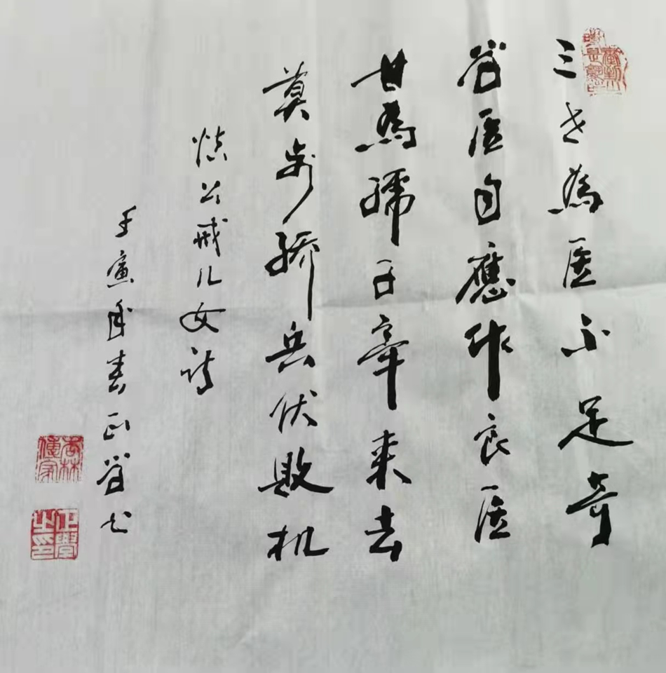 3月24日,新疆书协主席李般木先生和甘肃日报编辑梁军来访,李主席将回乌鲁木齐,便餐饯别,书画之余,三友联句成诗。
