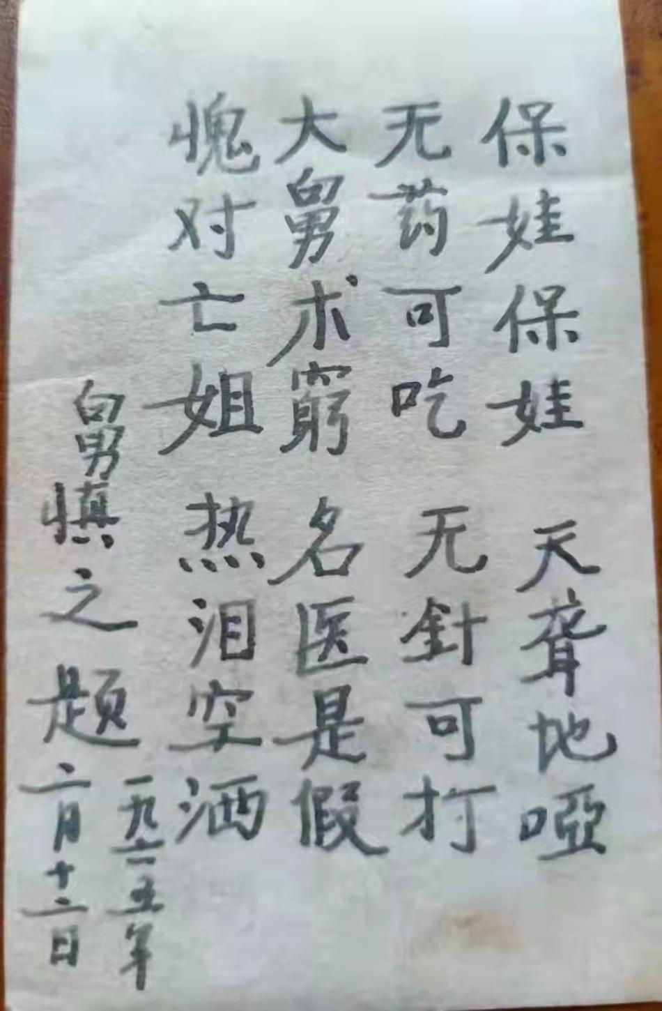 冬,70岁生日,原蓼阳小学1941年毕业生杨泉作《满江红·贺慎之老师七十寿辰》。