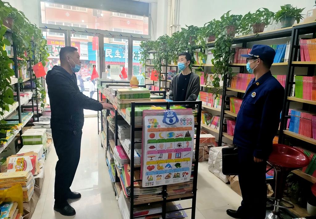 检查组先后深入希望印刷公司、新华书店、小博士书店、黄金页书店、洛门文化书店、洛门文苑书店、洛门育英书店、洛门学子书城、洛门学乐宝文具店、百世快递、顺丰快递投递点等经营场所,对常态化长效化疫情防控、生产经营安全责任落实情况进行专项排查检查。