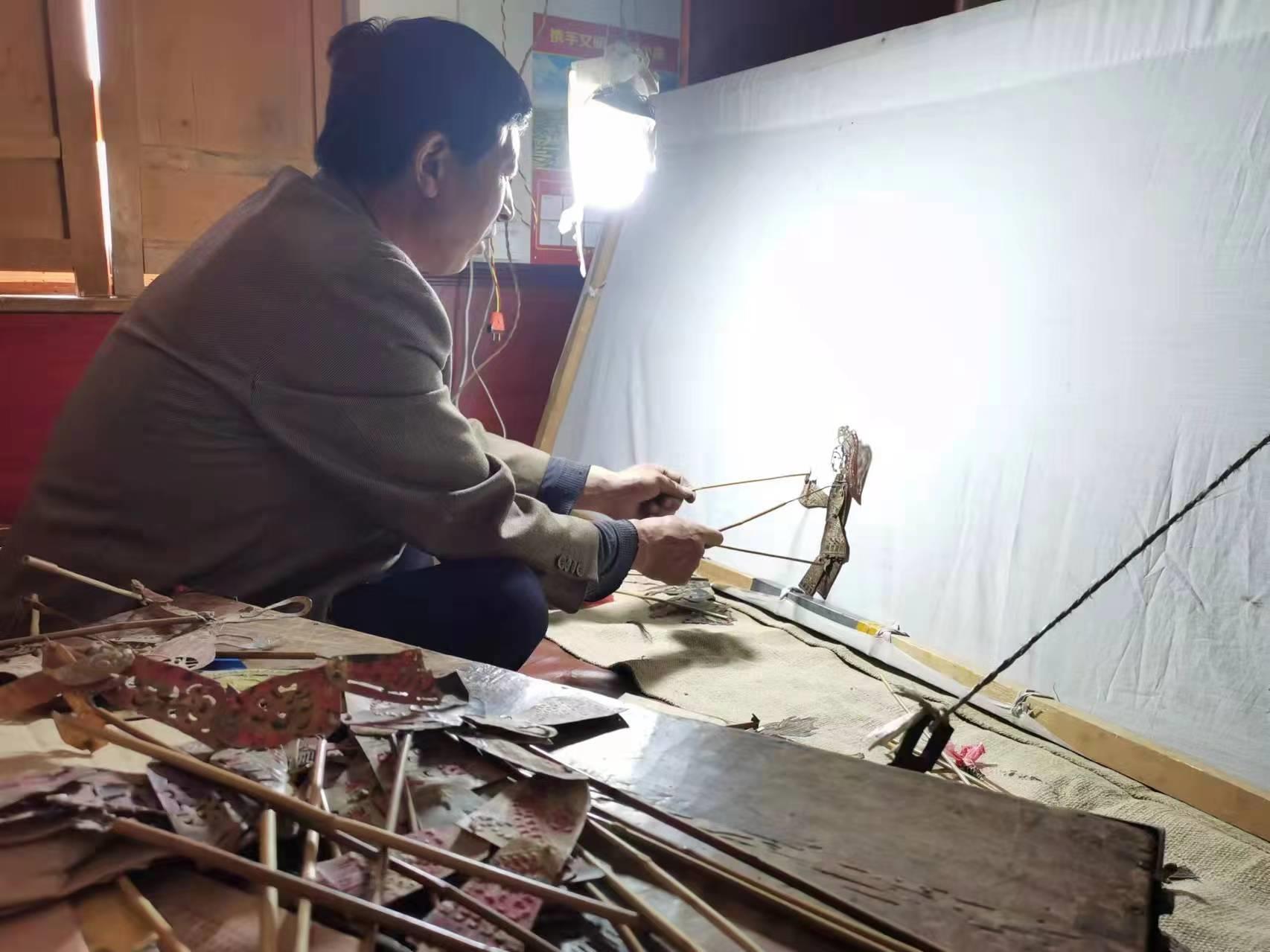 “有一次,妻子挺着大肚不方便,不小心开水烫在了腿上,但人家早就定好了会戏,等着呢。我转身一走去演出,打发人叫来丈母娘照看。”说起往事,秦长红有愧疚,但家里人都默默支持他,“虽然搞皮影只能养家糊口,发不了家,致不了富,不如出去打工挣钱,但十里八乡各村的会戏都需要,能给群众带来快乐,能给一方带来吉祥平安,朴实厚道的乡里乡亲又都抬举我们手艺人,这就知足常乐了。”
