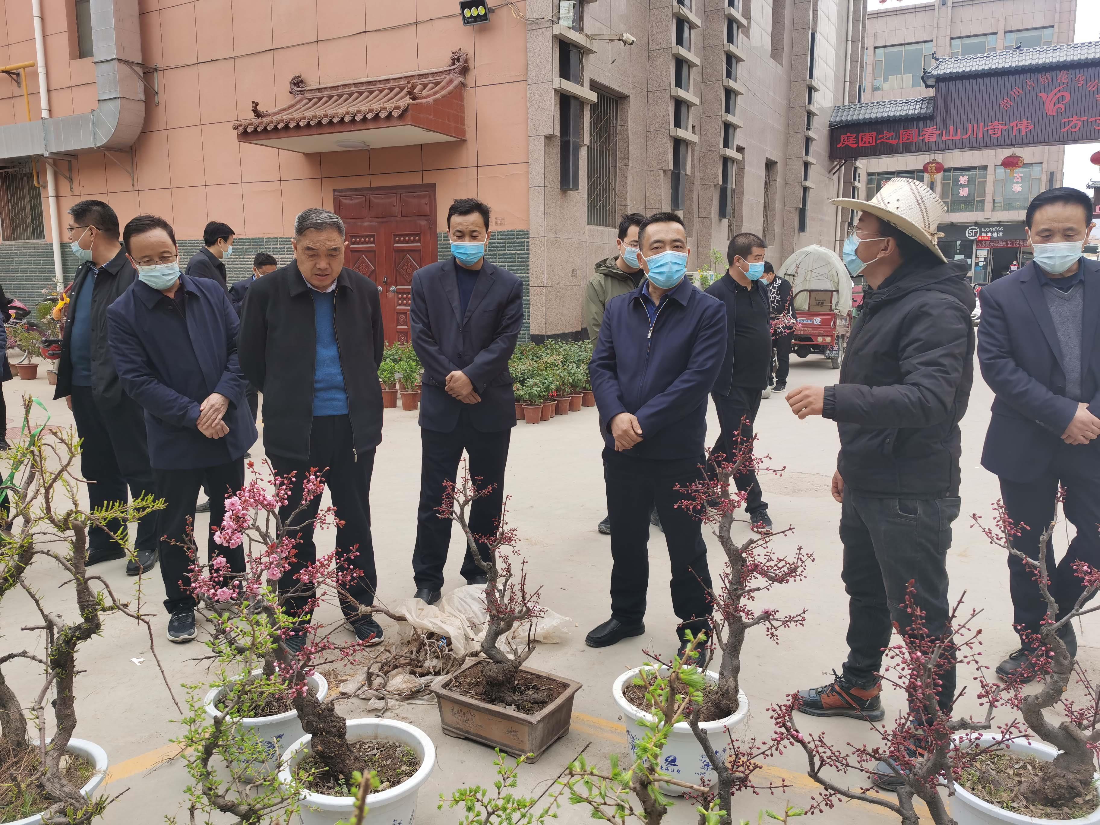 在洛门花鸟虫鱼市场和和艺园种植专业合作社,王新强详细了解春季绿化苗木和盆景市场供应,与商户和群众亲切交流,询问苗木价格、市场供应和销售等情况。他强调,要根据市场需求,大力发展绿化苗木和花卉盆景等产业,提高苗木和花卉盆景质量,满足市场需要,努力提高群众收入。要加大宣传力度,积极筹备渭川盆艺展销会,对各类盆景盆艺进行集中展销,进一步提高渭川盆艺的知名度和影响力。