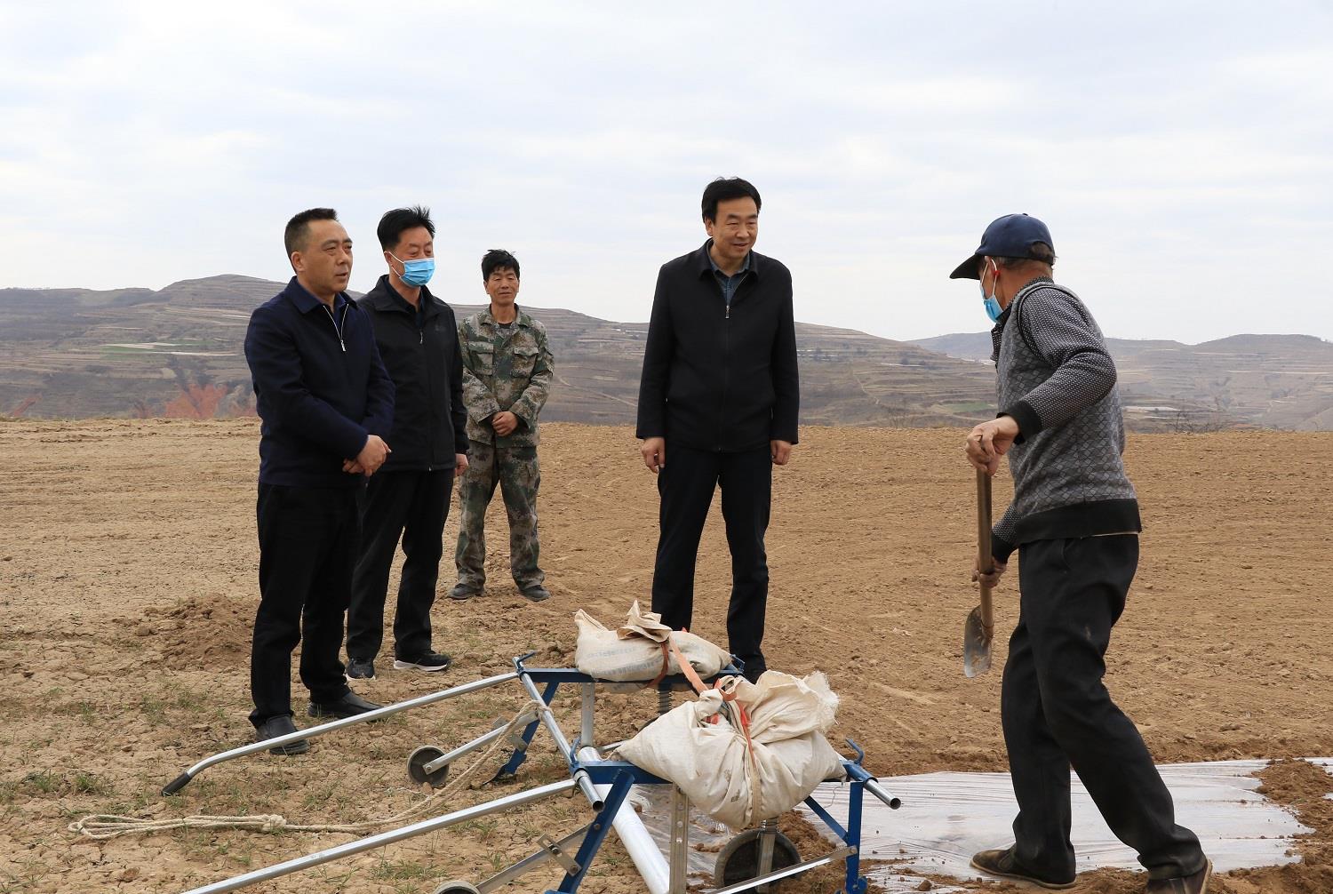 在咀头乡白湾、元树村和榆盘镇康沟、钟楼村,王新强实地查看撂荒地整治和马铃薯种植基地覆膜等情况,与群众亲切交流,详细询问种植的农作物面积、产量、收入等情况。他强调,要高度重视疫情防控,摸清来县返县人员底数,加快推进农村重点人群核酸检测,精准落实各项防控措施,大力宣传疫情防控政策知识,教育引导群众养成良好的卫生习惯,持续巩固疫情防控成果。要坚持高标准规划,提高工作的精细化水平,建设马铃薯种植基地,打造典型样板。要统筹抓好行道树栽植和修剪管护、发展村级集体经济、撂荒地整治、农村环境治理等各项工作,做到疫情防控和农业生产“两不误”。