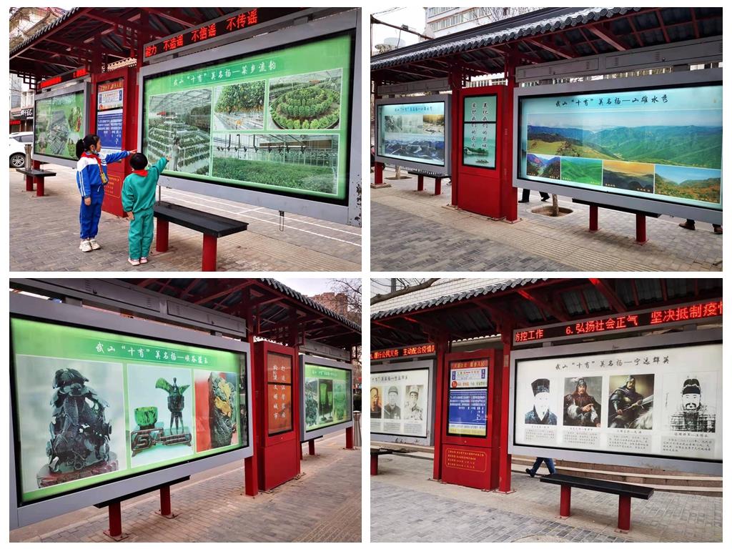 今年以来,武山县精心策划、因地制宜,依托新时代文明实践广场和公交汽车站点,打造了“德润武山·向榜样致敬、与文明同行”、广场武山“十有”文化、弘扬中国传统美德·做文明有礼武山人、图说我们的社会主义核心价值观、公交车站点武山“十有”文化等五大宣传教育长廊。通过多渠道广泛宣传,进一步增强了先进典型、县域文化、社会主义核心价值观和传统美德的宣传力度,正潜移默化地影响广大居民群众,不断增强文明意识,提高道德修养,讲好新时代武山故事,将文明内化于心、外化于行。
