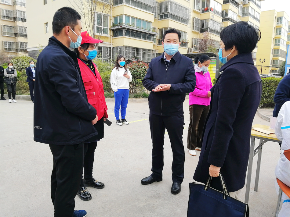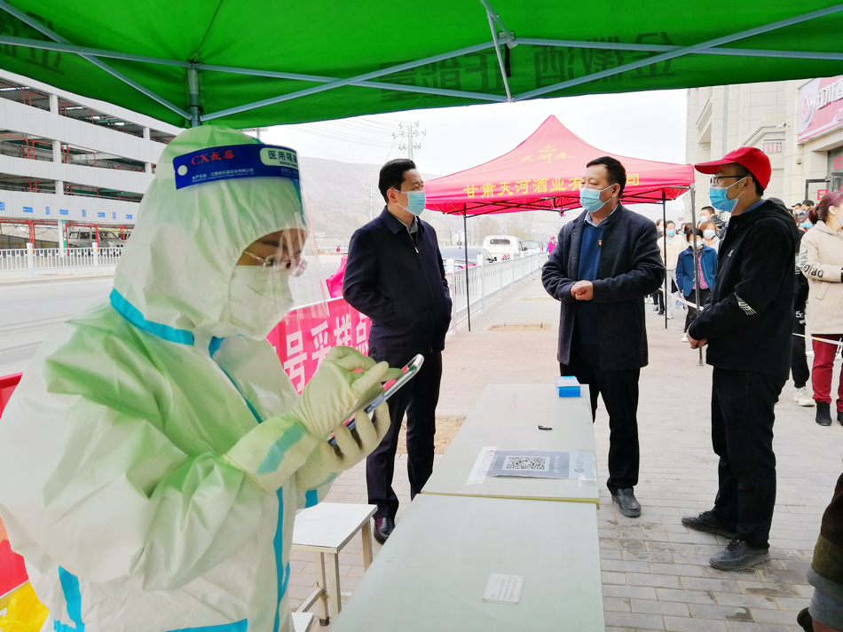 王志成实地查看了采样点区域划分、人员配备、检测流程、服务保障和防控措施落实等情况,详细了解了采样点检测人员范围、信息采集录入、计划完成时间、样品转运等工作,并同现场的医护人员、工作人员和志愿者亲切交流,认真听取他们的意见建议,并反复叮嘱他们要规范操作程序、做好个人防护,组织好、引导好现场群众,确保安全平稳、高质高效完成检测任务。