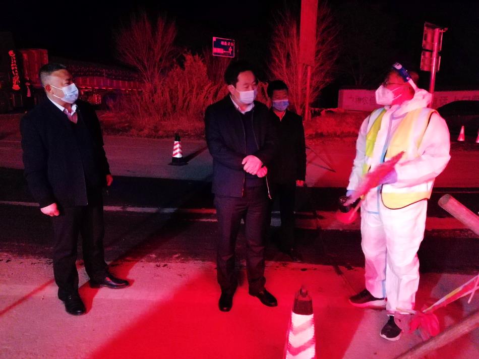 3月22日晚,县委副书记、县长、县疫情联防联控领导小组组长王志成采取不打招呼、不定路线、直奔基层的方式,深入到山丹镇机关及马力镇镇区、北九村,随机检查镇村两级疫情防控和应急值守工作。副县长、县公安局局长温阿军一同检查。