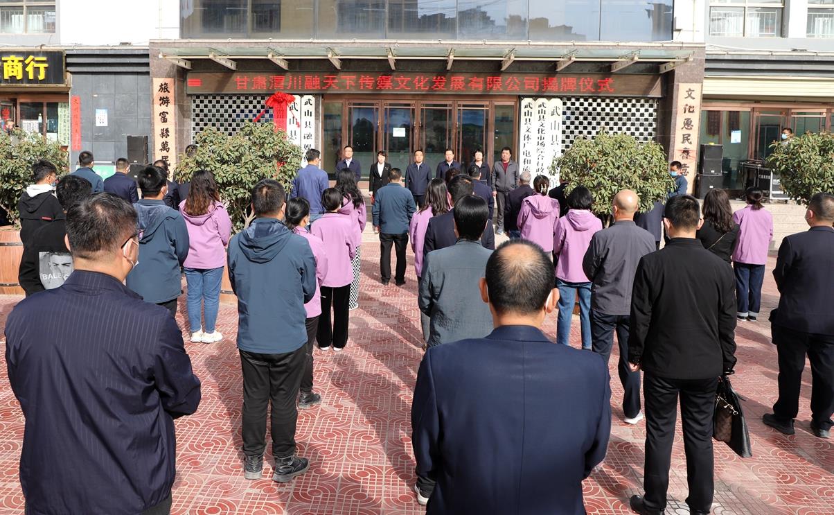 武山县融媒体中心3月15日讯(记者 康正东 董世雄)春到渭川万物苏,宁远大地换新颜;撸起袖子加油干,媒体融合再扬帆。3月15日,甘肃渭川融天下传媒文化发展有限公司揭牌成立。县委书记王新强,县委副书记、县长王志成出席揭牌仪式共同为甘肃渭川融天下传媒文化发展有限公司揭牌。县委常委、宣传部部长胡丽霞致辞。县人大常委会副主任李燕玲,副县长李峰,县政协副主席孟立瑞,县直有关部门主要负责人,县融媒体中心全体干部职工,以及县内金融机构负责人和自媒体代表参加揭牌仪式。