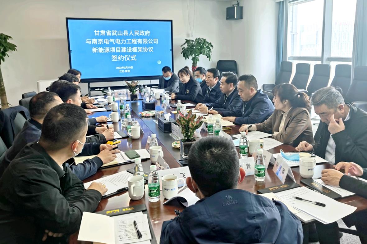 3月10日,天水市人大常委会党组副书记、副主任索鸿宾,武山县委书记王新强赴南京电气电力工程有限公司考察,与南京电气电力工程有限公司总经理姚汉卿就深化项目合作进行对接,并签订新能源项目建设框架协议。