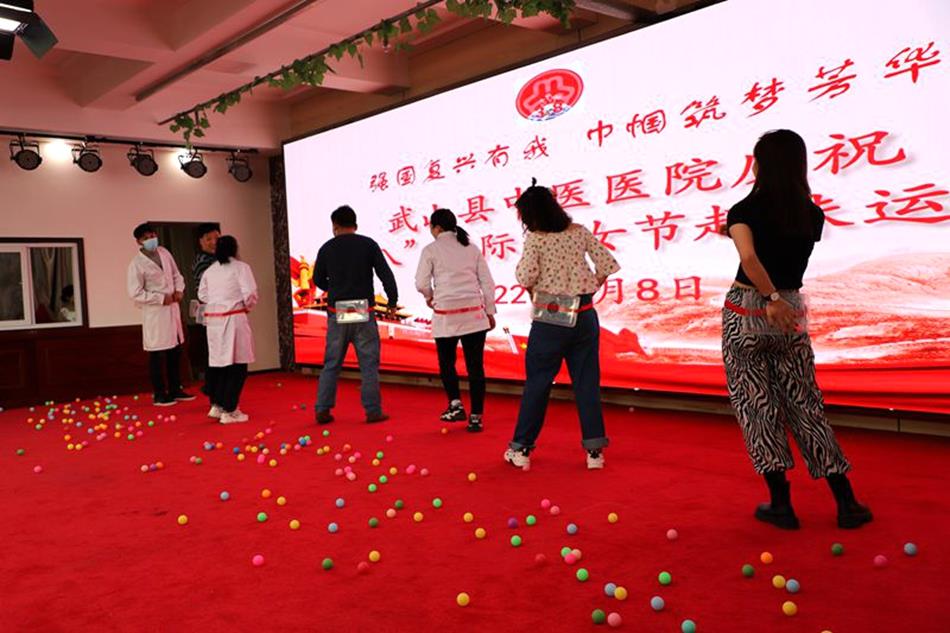 武山县融媒体中心3月8日讯(记者 薛妍 王继明 马中奇)阳春三月,春意融融,百草吐芳。3月8日下午,武山县中医医院门诊5楼会议室里,欢歌笑语,热闹异常。一场别开生面的趣味运动会正在进行,这是该院庆祝“三八”国际妇女节举办的系列活动之一。