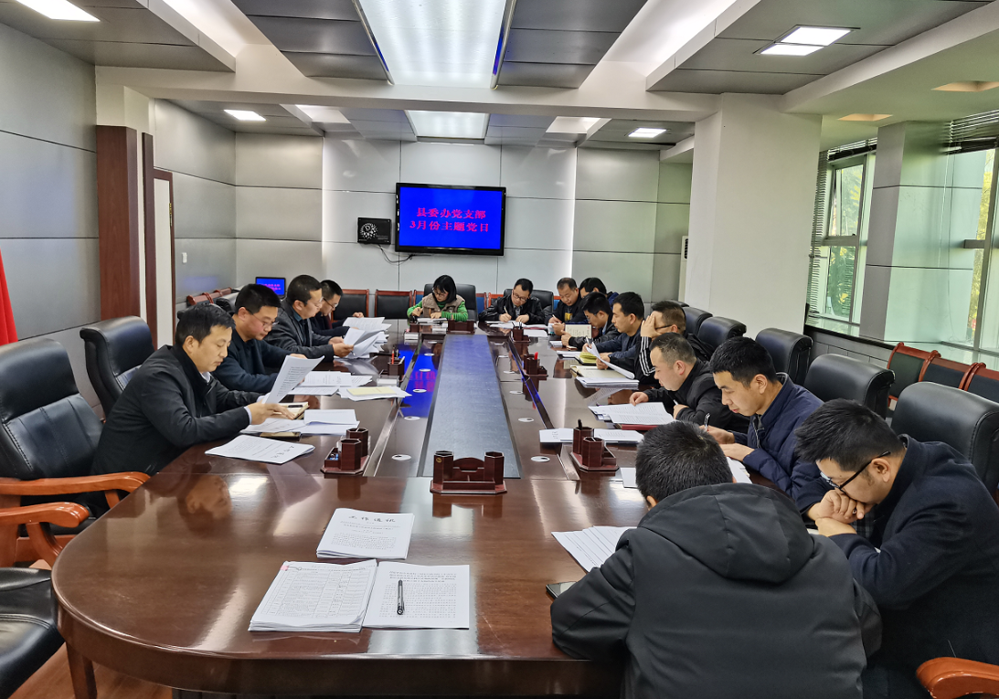 3月7日,县委办党支部召开3月份“主题党日”活动,学习习近平总书记在2022年春季学期中央党校(国家行政学院)中青年干部培训班开班式上的重要讲话精神、市委粮食领域巡察反馈会和十五届县纪委二次全会、县委巡察启动会、全县公安工作会议、信访工作推进会、宣传思想工作、民族宗教工作会议精神,以及重大项目开工暨招商专班出征、“一爱一为”“3.5”学雷锋主题志愿服务活动启动仪式等精神,并开展了保密警示教育。