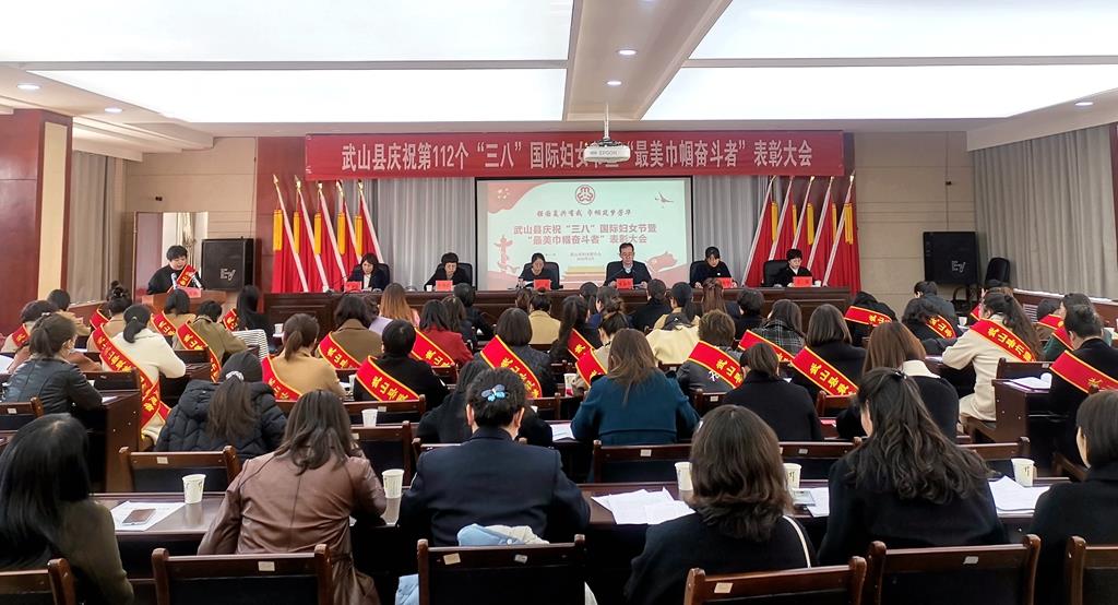 武山县融媒体中心3月4日讯(记者 杜鹃 车彤瑶)3月3日,武山县召开庆祝第112个“三八”国际妇女节暨“最美巾帼奋斗者”表彰大会。县委常委、副县长石云宣读《武山县妇女联合会关于表彰全县“最美巾帼奋斗者”的决定》,县委常委、组织部部长宋昌华出席并讲话,县人大常委会副主任李燕玲、县政协副主席党荣华出席会议。县妇联十四届执委,各乡镇分管领导、妇联主席,县直各单位妇委会主任,受表彰的“最美巾帼奋斗者”参加会议。