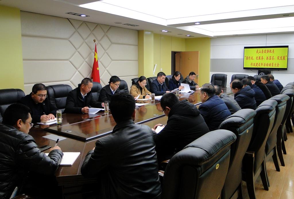 2月23日,县政协机关召开“强作风、优服务、抓落实、促发展”作风建设年活动启动会,县政协党组成员、副主席孟立瑞主持会议并讲话,县政协党组成员、副主席许鹏云、邓红兵,副主席党荣华、吴健明,党组成员宗新武、魏小银,各专委办负责人和全体机关干部参加会议。