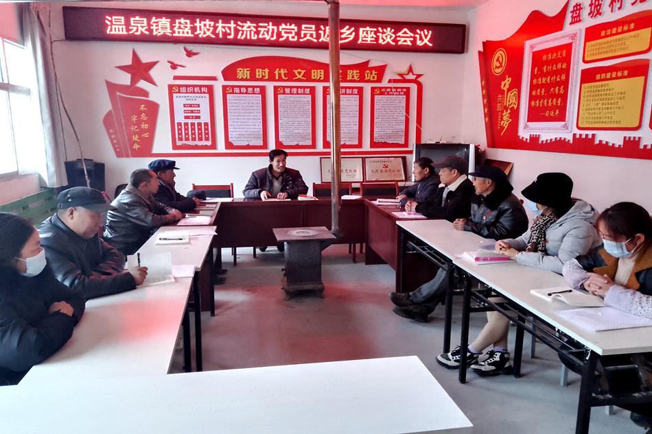 结合春节前后流动党员集中返乡返程的有利时机,温泉镇采取集中补课、座谈交流、党性锻炼、行前谈话等措施,加强返乡流动党员教育管理,确保党员“离乡不离党,归乡有作为”,拉进了流动党员与家乡的距离。