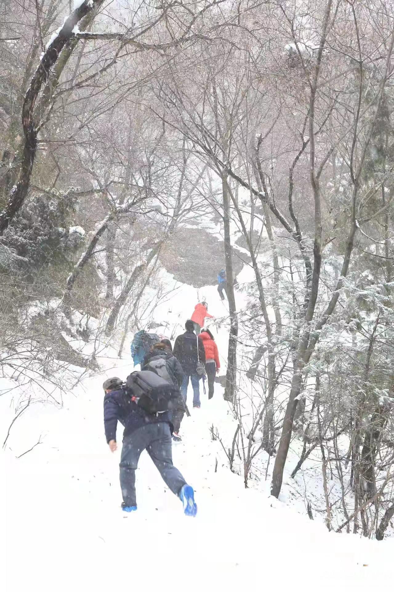 由于这场大雪的降雪量较大,再加上持续降温,路面的行车难度系数较大。虽然大雪影响出行,但是摄影团队的热情非常高涨,一行七人在行驶安全的前提下,来到壮美的老君山景区。