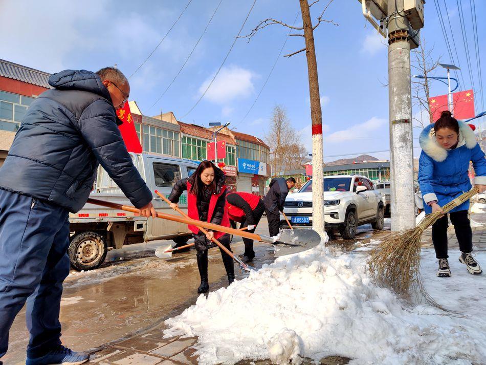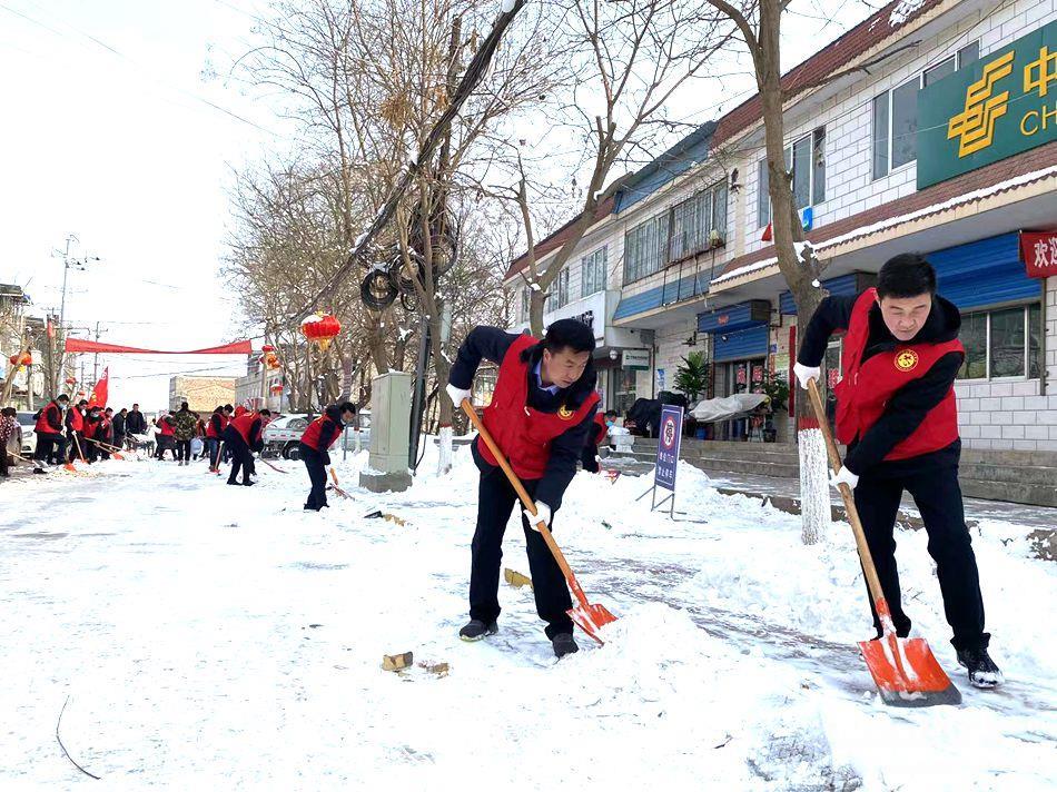 干群齐心开新局。在鸳鸯镇,镇机关和社区党员志愿者纷纷走上街头,挥扫扬铲,对镇区交通要道、机关大院及周边区域的积雪进行清理。各村对村内主干道、党群服务中心积雪进行清扫,党员干部、志愿者和公益性岗位主动认领责任区,分片包干,开展积雪清扫行动。在他们的带动下,广大群众纷纷走出家门,清扫路面,转运积雪,为群众安全出行提供保障。