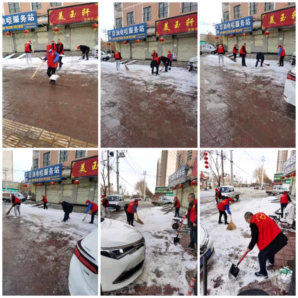武山县融媒体中心1月28日讯(记者 杨耀斌 王继明)接连几日,大范围雨雪天气过程降临武山大地,纷飞的大雪把武山装扮得银装素裹,在带来 “美景”的同时,也给市民安全出行带来极大不便。为防止雨雪冰冻天气给群众交通出行造成不利影响,1月28日,全县党员干部职工集体出动,开展“一爱一为”志愿服务活动,挥舞铁锹铲除积雪,处处闪动着志愿红。