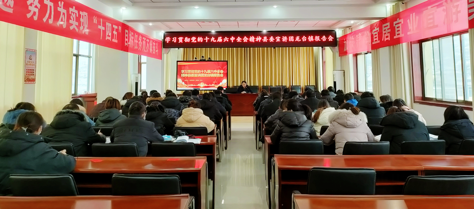为深入学习贯彻党的十九届六中全会精神,日前,县委常委、县委宣讲团成员、副县长石云深入龙台镇,宣讲党的十九届六中全会精神。龙台镇全体干部、各村党支部书记等60余人参加会议。