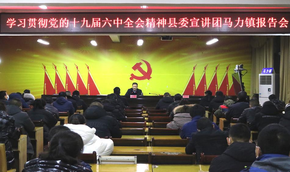 1月26日,县委常委、县纪委书记、县监察委员会主任李康宁在马力镇宣讲党的十九届六中全会精神,镇全体干部聆听了报告。