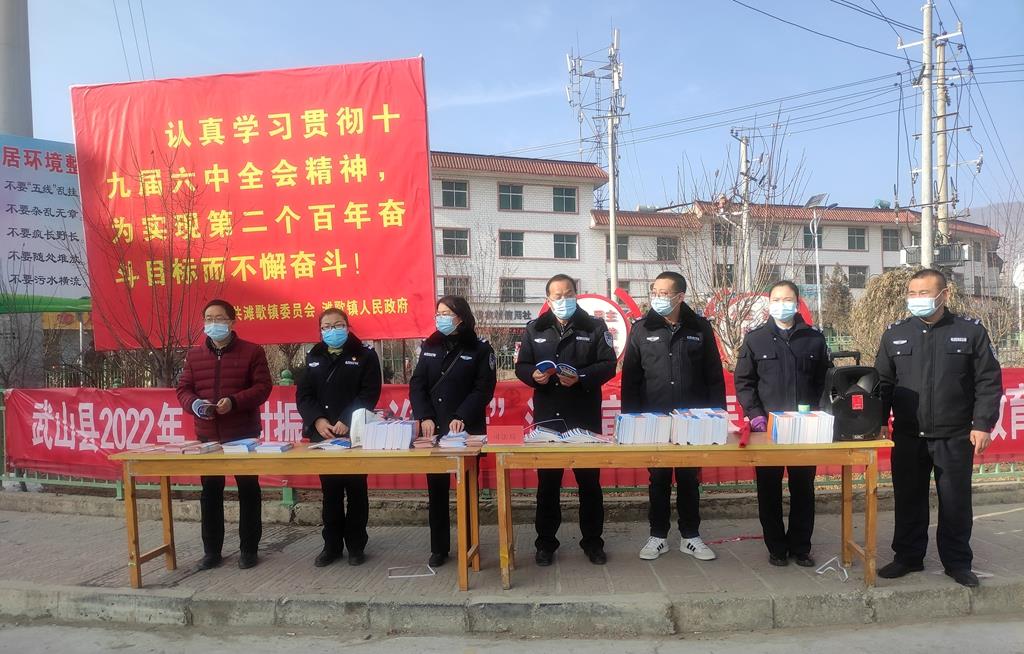 武山县融媒体中心1月21日讯(通讯员 侯迎强)为深入贯彻落实党的十九届六中全会精神,推动“八五”普法规划和城乡共治“社会治理提升行动”任务落实,进一步提高全县广大干部群众的法律意识和法治观念,减少和预防违法犯罪,营造安定和谐的社会环境,武山县利用一个月时间在春节前后集中开展法治宣传教育和矛盾纠纷排查化解活动。