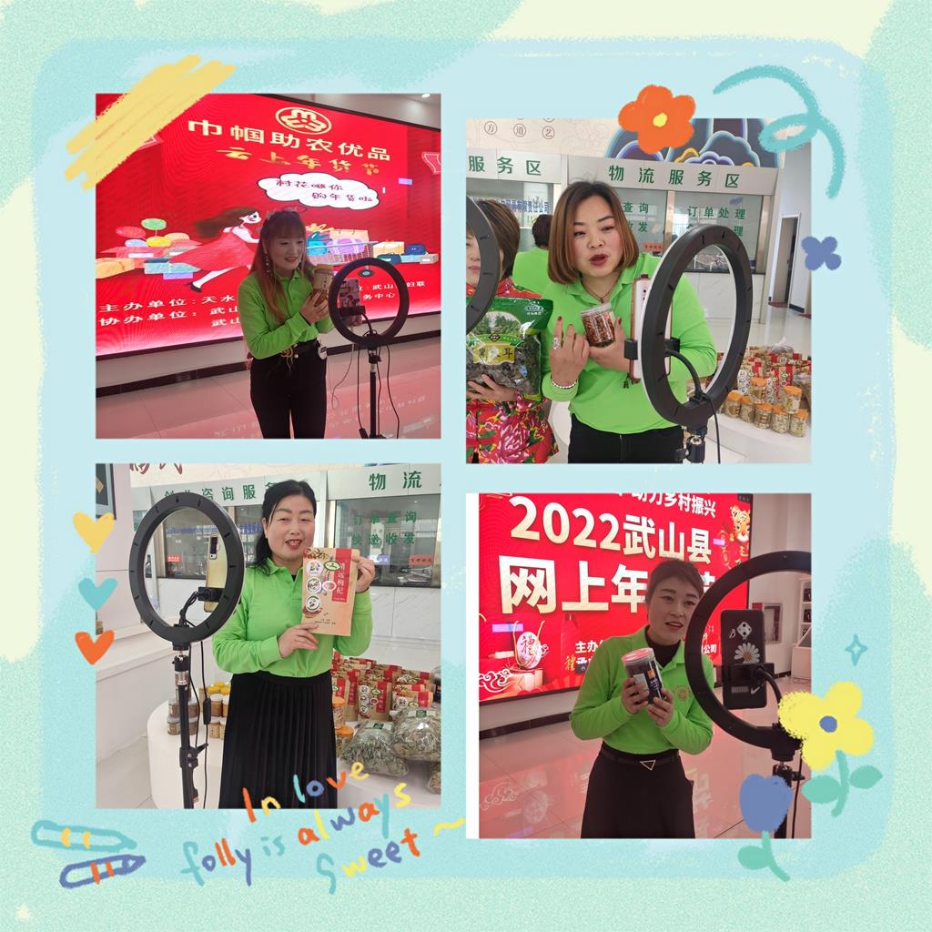 俗话说“过了腊八就是年”,每年从腊八到春节期间都是年货采购的高峰期。2022年春节之际,由武山县妇联组织的巾帼助农优品,云上年货节在县电商公共服务中心举行首播仪式,武山县村花直播团在现场直播带货推广农特产品,拓宽农特产品销路,塑造巾帼品牌,助力乡村振兴。