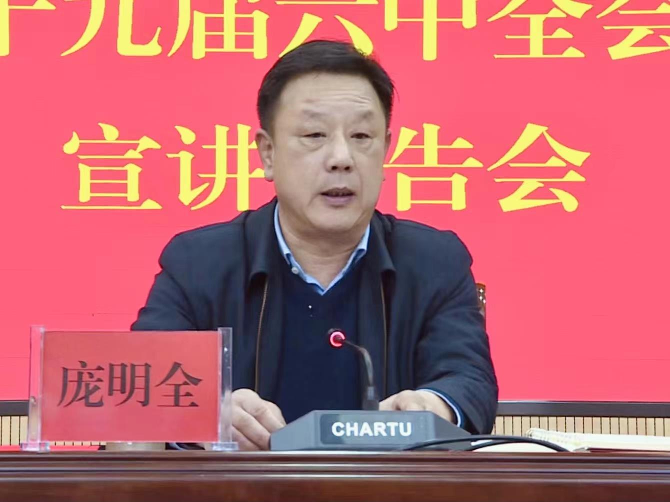 会上,庞明全结合自身学习体会和政协工作实际,从《决议》起草过程和基本框架,深刻认识总结党的百年奋斗重大成就和历史经验的重大意义,深刻认识党的百年奋斗四大光辉历程和四大辉煌成就,深刻认识中国特色社会主义新时代的历史性变革和历史性成就,深刻认识中国共产党百年奋斗的历史意义和历史经验,切实把全会精神体现在政协各项履职工作上六个方面对党的十九届六中全会精神进行了深入解读。同时对始终铭记坚持党的领导,自觉肩负新时代使命责任,广泛凝聚各方共识和力量进行了全面宣讲和深入阐释。