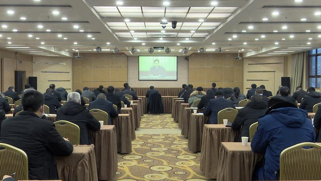 会议以视频形式召开,县领导王志成、令军强、吴学深、刘莉娜、李峰在武山县分会场收听收看。