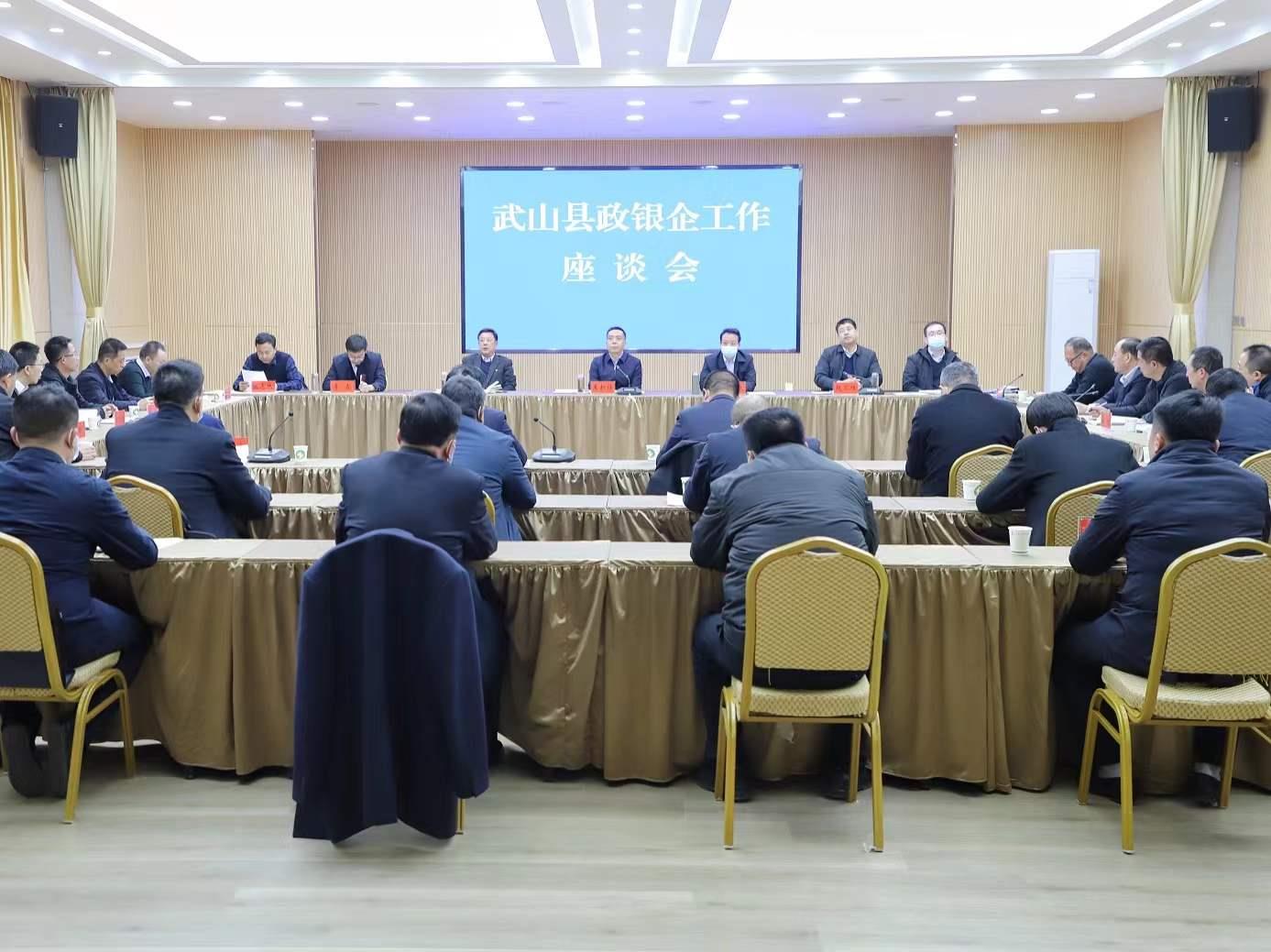 武山县融媒体中心12月31日讯(记者 康正东 管秋勇)12月31日下午,武山县召开政银企工作座谈会,县委书记王新强出席会议并讲话,县委常委、副县长赵百祥主持会议,县领导孙德银、庞明全、李森、宋昌华、张志林出席会议,县直相关部门和驻县金融机构负责人,以及县内部分民营企业代表参加会议。会上,县税务局、县财政局、人行武山支行、县信用联社和甘肃九立发展集团、甘肃宇辰房地产开发有限公司分别作了发言。