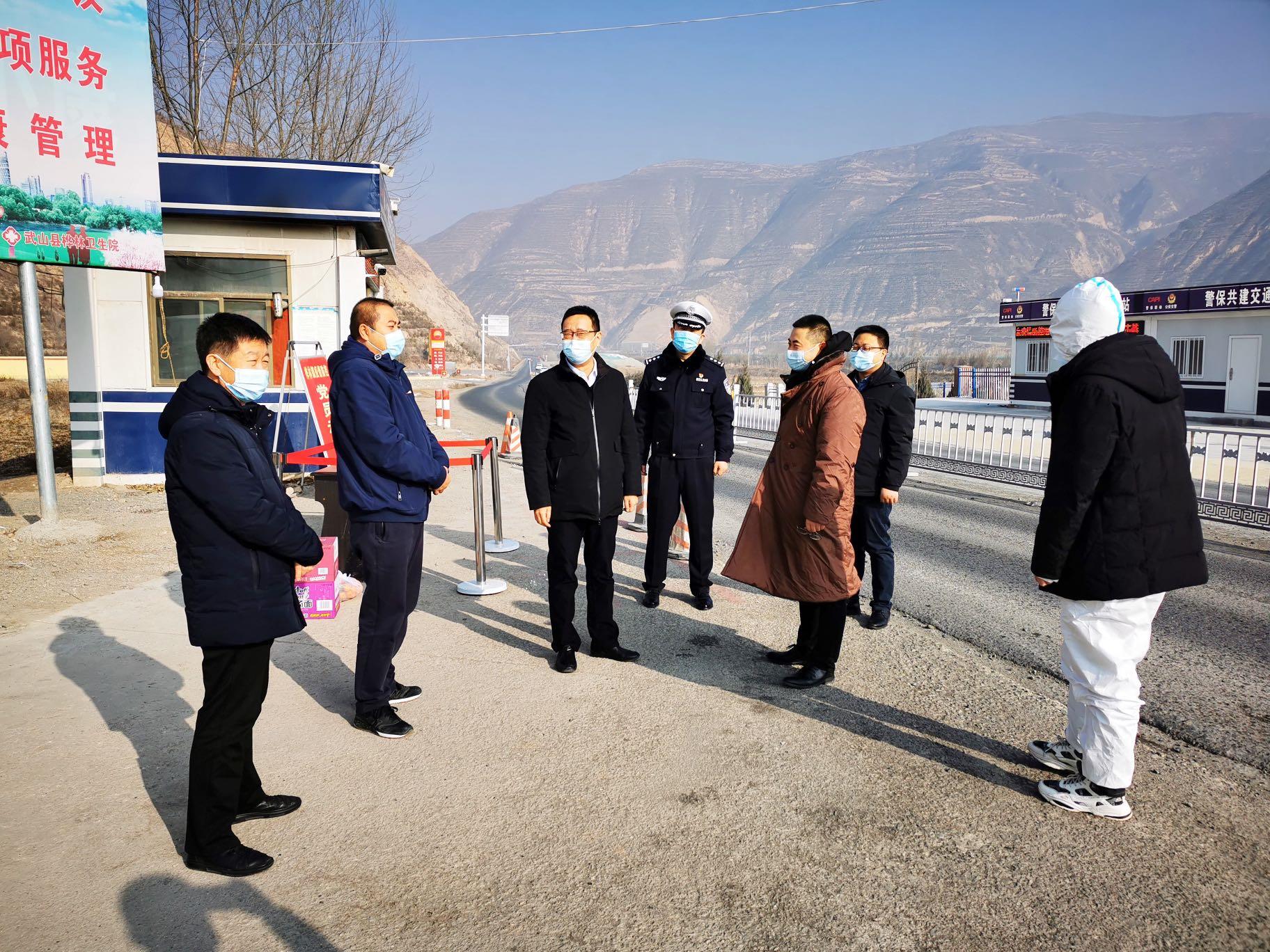 武山县融媒体中心1月1日讯(记者 李益)一元复始,万象更新。1月1日,副县长李峰深入县新冠肺炎疫情防控指挥部、县中医医院、县委党校、桦林镇、鸳鸯镇等疫情防控点,检查疫情防控工作,向坚守在工作岗位的一线人员送去节日的祝福。