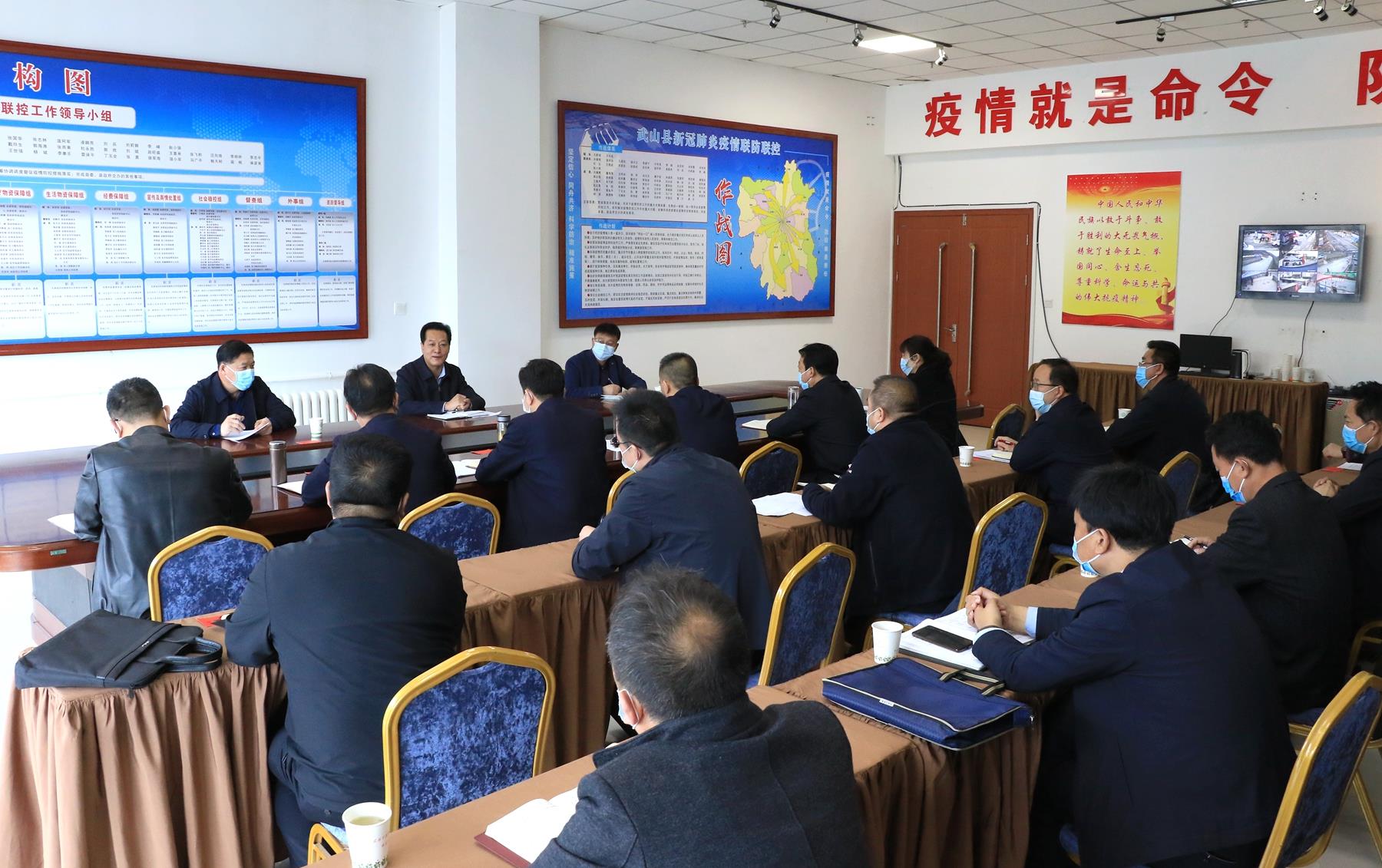 3月25日,市人大常委会副主任申君明带领督导组来武山督查指导疫情防控工作,听取武山县疫情防控工作汇报,对当前疫情防控工作提出要求。县委书记、县新冠肺炎疫情联防联控领导小组组长王新强主持会议。县委副书记、县长王志成,县人大常委会主任孙德银,县政协主席庞明全,县委常委、宣传部部长胡丽霞,副县长李峰及县新冠肺炎疫情联防联控领导小组相关成员单位负责人参加会议。