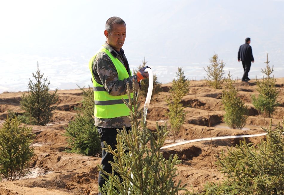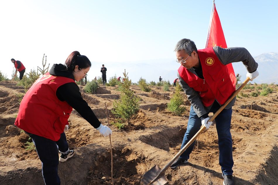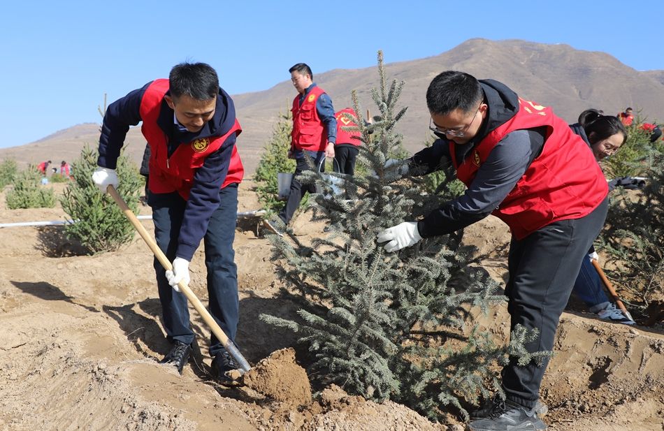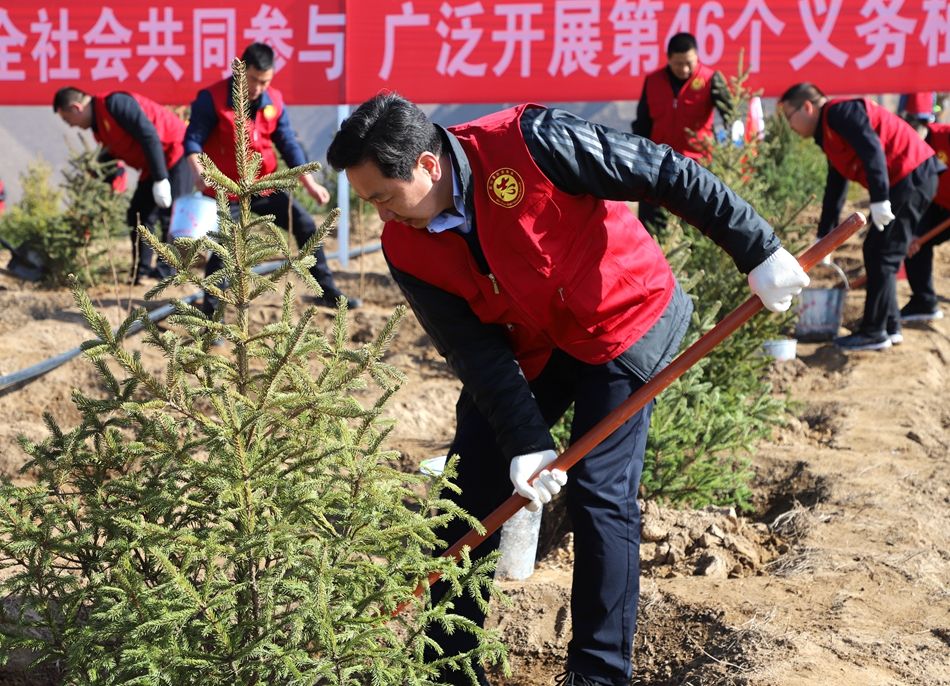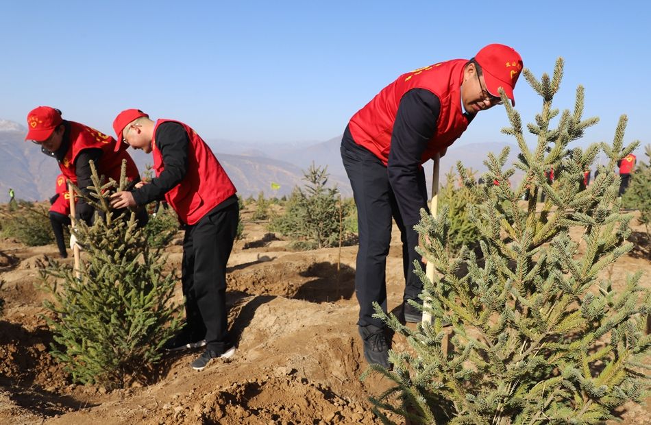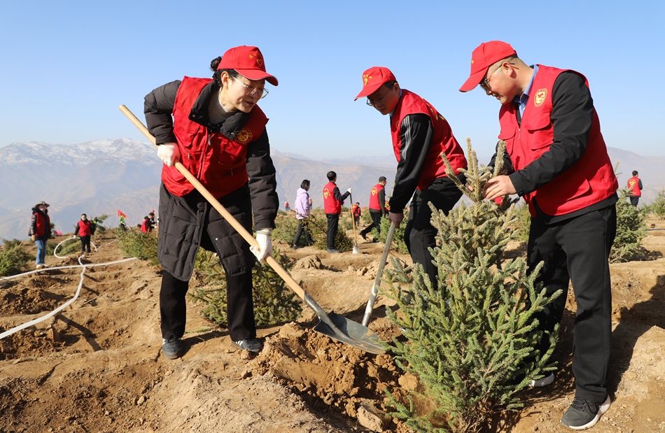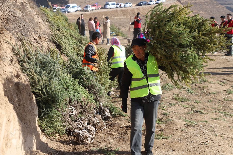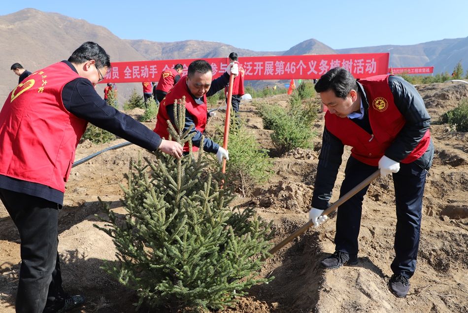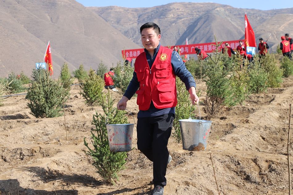 植树现场,王新强等县领导与干部群众团结协作,挥锹填土、扶树正苗、培实新土、浇水定根,每道工序一丝不苟、认真细致。经过干部职工辛勤劳动,新栽种的10000余株国槐和云杉迎风挺立,焕发出绿色希望,为初春的武山大地增添了新的生机和活力。