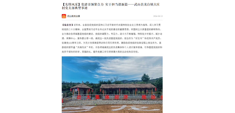 全县各级党组织积极挖掘选树了一批各行业领域先进基层党组织和表现突出的优秀党员,通过政府网站、甘肃党建APP、微信公众号等平台,进行大力宣传。并根据工作实际,精心拍摄一批“微视频”,在县级媒体、网络平台上进行播放,营造向先进致敬、向先进学习的浓厚氛围。