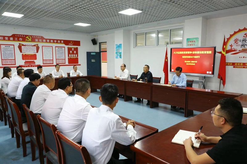 王新强强调,近年来,县委、县政府高度重视教育工作,逐年加大教育投入,强化学校班子及教师队伍建设,深化教育综合改革,全县教育教学质量稳步提升。全县广大教师和教育工作者要传承创新,大力弘扬教育家精神,传承发展有效经验做法,探索创新办学授课模式,不断提升教育教学水平,推动全县教育事业取得新的更大成效。要爱岗敬业,不忘初心使命,潜心教书育人,干一行爱一行,努力在教育岗位上实现人生价值,成就事业梦想。要立德树人,加强师德修养、追求高尚情操,以德修身、以德立学、以德施教,用自己的品德修养、人格魅力引领学生崇德向善,推动实现教学相长。要兴趣高雅,培养健康向上的兴趣爱好,调整心态、释放压力,始终以饱满的热情和精神状态投入教育教学工作。要团结共谋,抓好学校班子、带好教师队伍、凝聚工作合力,形成心齐气顺、共谋发展的工作格局。要资源优化,强化师资力量统筹安排、科学调配,做到专业对口、人岗相适,让每位教师发挥最大的作用。要净化校园,加强校园人文教育、法治教育,持续抓好校园及周边环境整治,严密防范治理食品安全、学生欺凌等各类风险隐患,不断净化校园生态,营造干净整洁、舒适舒心、安全和谐、充满活力的校园环境(审核 余泉)