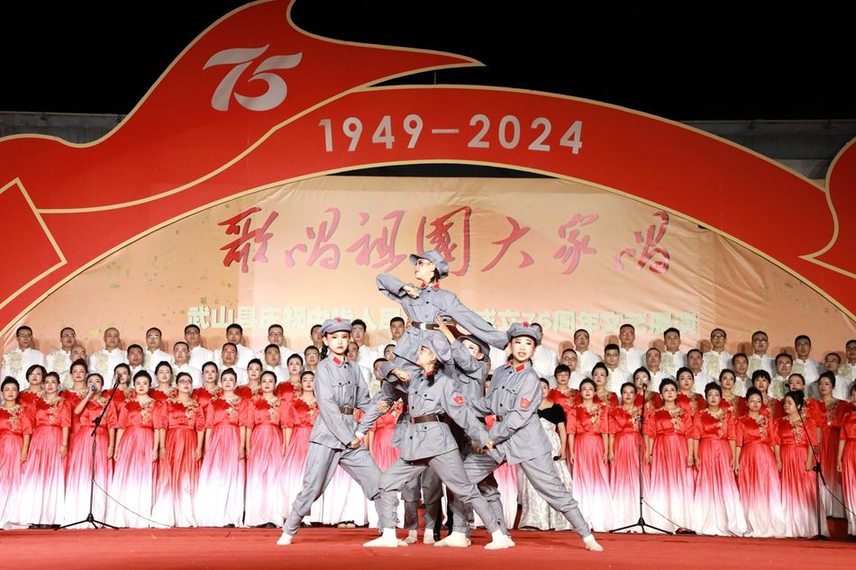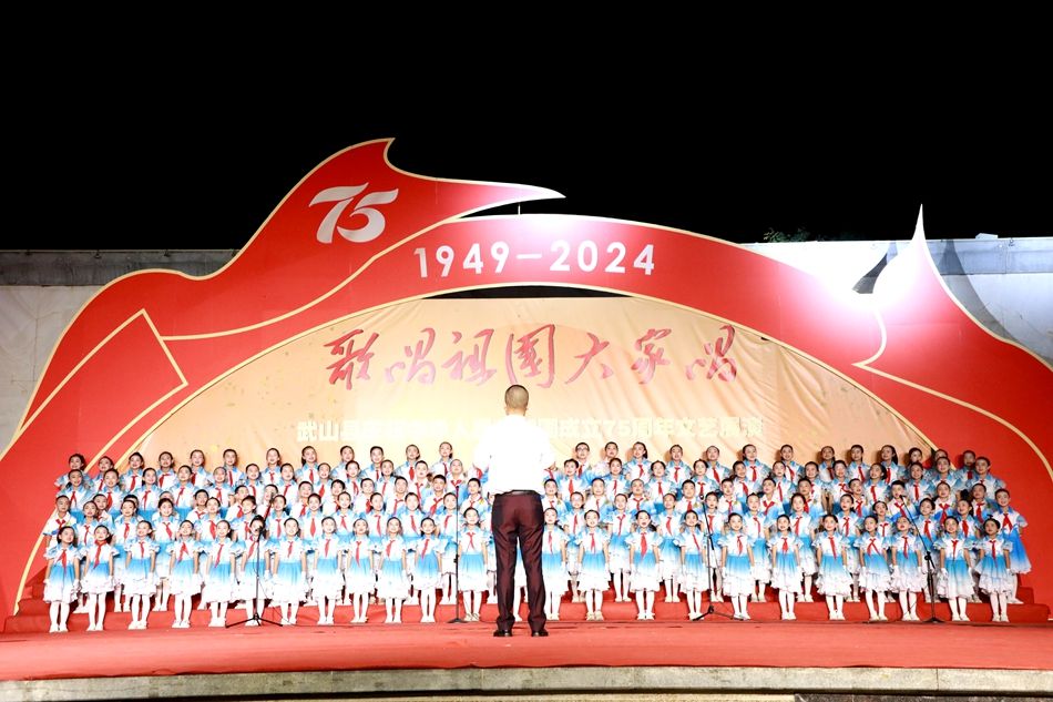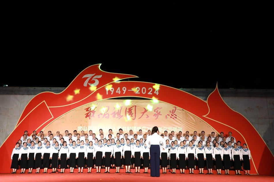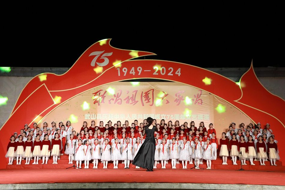 新武山讯(记者 康正东 何慧 赵云霞)9月28日晚,“歌唱祖国大家唱”武山县庆祝中华人民共和国成立75周年歌咏活动教育专场在县人民广场圆满举办,来自全县教育系统的上千名师生用歌声祝福祖国。