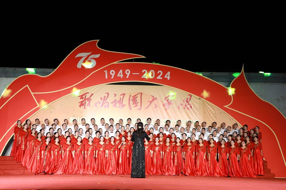 整场演出吟唱难忘的岁月,演绎时代的激情,共同歌唱伟大祖国的繁荣富强,深植浓厚的爱党爱国情怀,激发磅礴的干事创业热情。歌声点燃了现场群众对祖国的热爱和共鸣,大家自发跟着一起合唱,唱响对伟大祖国的美好祝福!