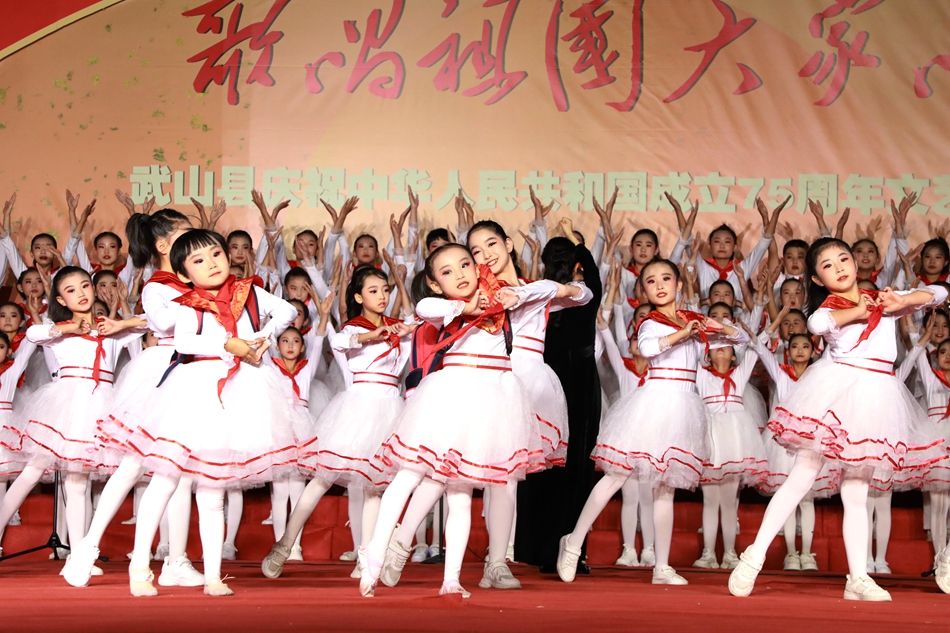 “一条大河波浪宽,风吹稻花香两岸……”武山县第四中学带来的《歌唱祖国》拉开演出序幕。洛门学区合唱队演唱的《光荣与梦想》号召我们跟着必胜的信仰向前进;城关第二小学带来的《今天是你的生日,中国》表达了对中国过去、现在和未来的深情回忆、感慨和希望,以及对于祖国母亲的深深敬意和祝福;武山县第三高级中学带来的舞蹈《唱支山歌给党听》旋律优美动听,节奏动感十足,表达了对共产党的无限感激之情……各学校或学校联队演唱的《少年,少年,祖国的春天》《祖国在我心窝里》《少年中国梦》《领航》《觉醒年代》《不忘初心》《四渡赤水出奇兵》《映山红》《在希望的田野上》《春风十万里》无不歌颂祖国、赞美祖国。