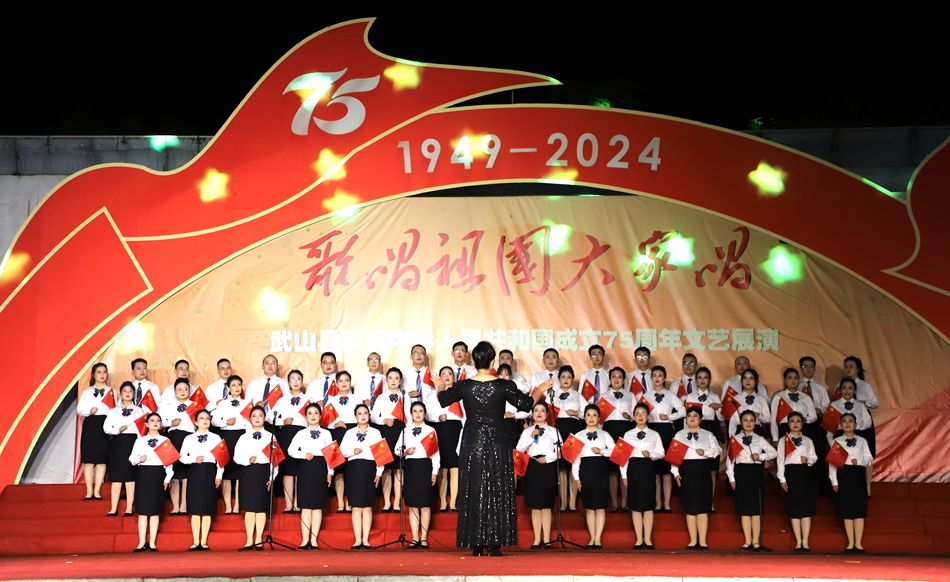 新武山讯(记者 杨耀斌 管秋勇 杨洋)9月29日晚,“歌唱祖国大家唱”武山县庆祝中华人民共和国成立75周年歌咏活动卫健专场在县人民广场举行。