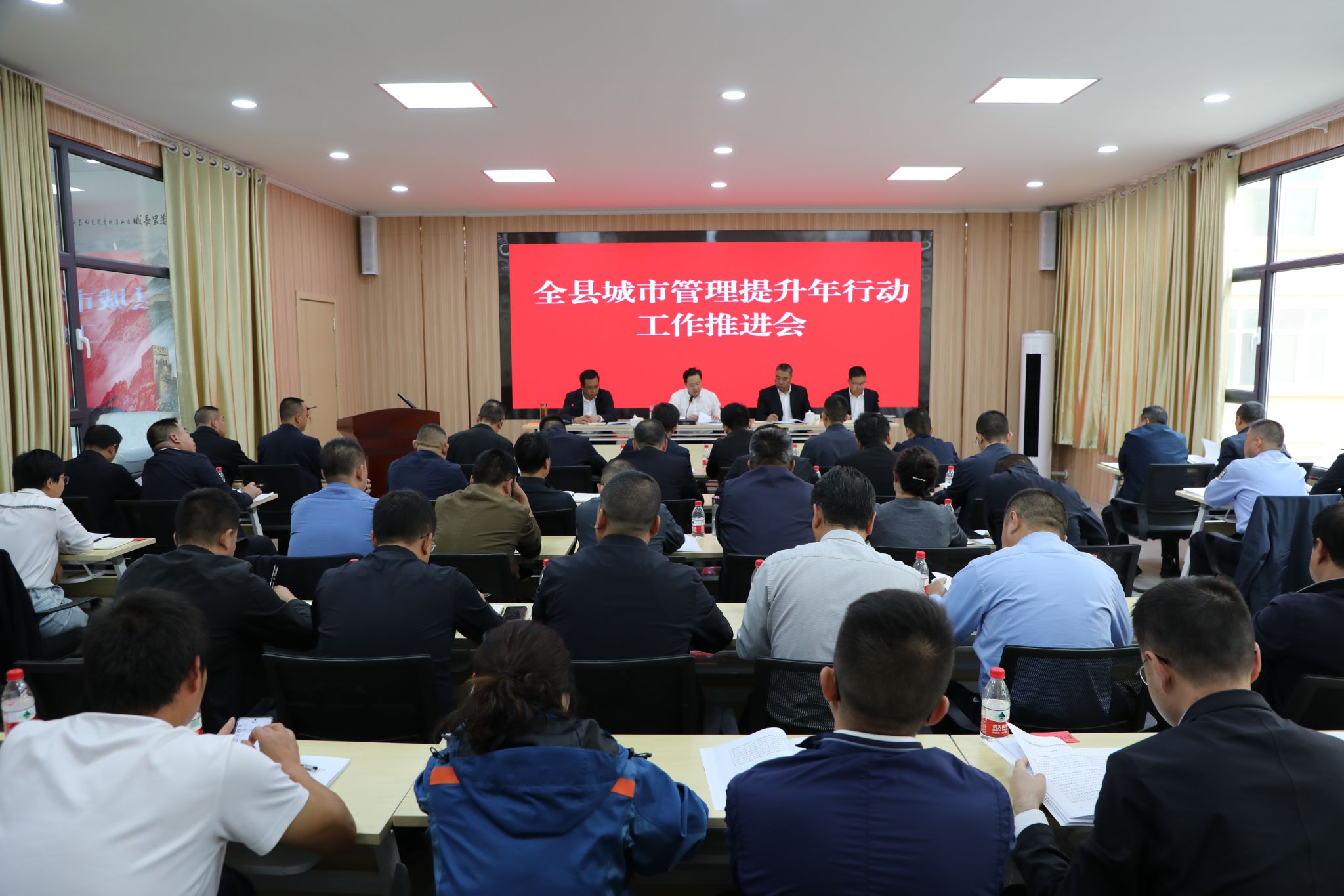 新武山讯 (记者 董世雄)9月30日,武山县召开城市管理提升年行动工作推进会议,总结成绩,分析问题,查找不足,安排部署当前及下一阶段城市管理提升重点工作。县委副书记、县长王志成出席会议并讲话,副县长刘耀青主持会议,县领导王喜来、邓红兵列席会议,各乡镇党委书记或乡镇长,县直相关部门和驻县有关单位主要负责人参加会议。