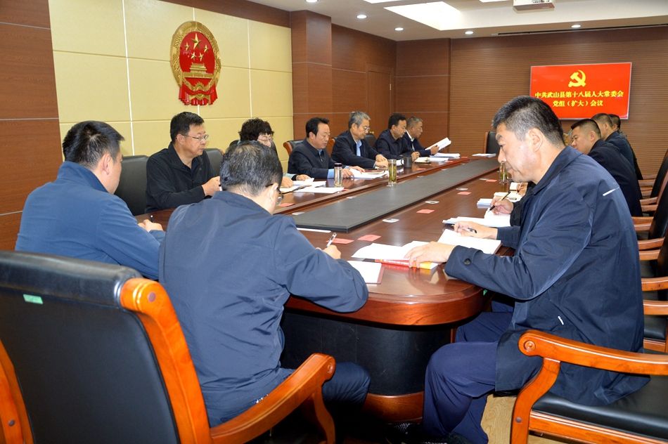 10月8日,县人大常委会党组书记、主任孙德银主持召开县十八届人大常委会党组(扩大)会议,县人大常委会党组副书记、副主任李燕玲,党组成员、副主任张志林、郭海涛、王喜来参加会议,县人大常委会副主任骆育喜,办公室、各工委,人大事务服务中心全体干部列席会议。