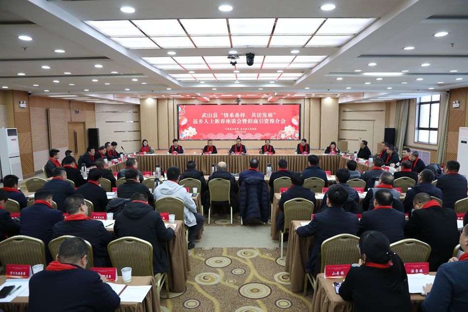 新武山讯(记者 赵超)2月5日,武山县召开“情系桑梓、共话发展”返乡人士新春座谈会暨招商引资推介会,与武山籍返乡人士共叙桑梓之情、共谋武山发展。县委副书记、县长赵百祥主持会议并讲话,县人大常委会主任孙德银,县政协主席秦福才,县委副书记李海巴,县委常委、统战部部长凌鹏亮,县委常委、副县长常乐,县委常委、宣传部部长李玉兰参加会议。
