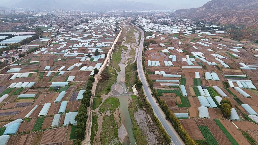 郭庄村是大南河流域主要的蔬菜种植基地,全村有耕地面积3000亩,主要以蒜苗、莴笋、架豆种植为主,平均每个大棚年收入15000元。近年来,为进一步改善菜农种植条件,提升种植收益,郭庄村借助钢架棚改造工程,实现了竹架棚到钢架棚的提升换代。现在,全村95%的土地通过大棚种植蔬菜,蔬菜产业成为村民增收致富的支柱产业。